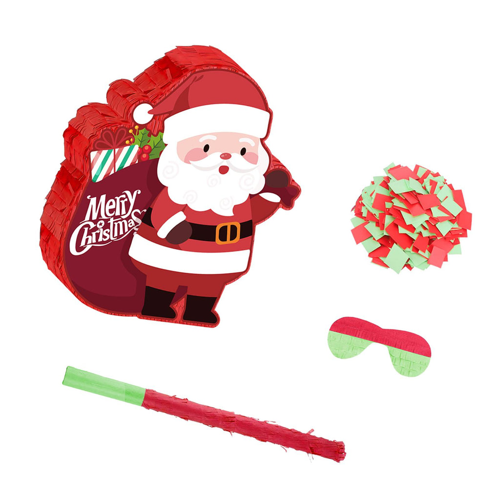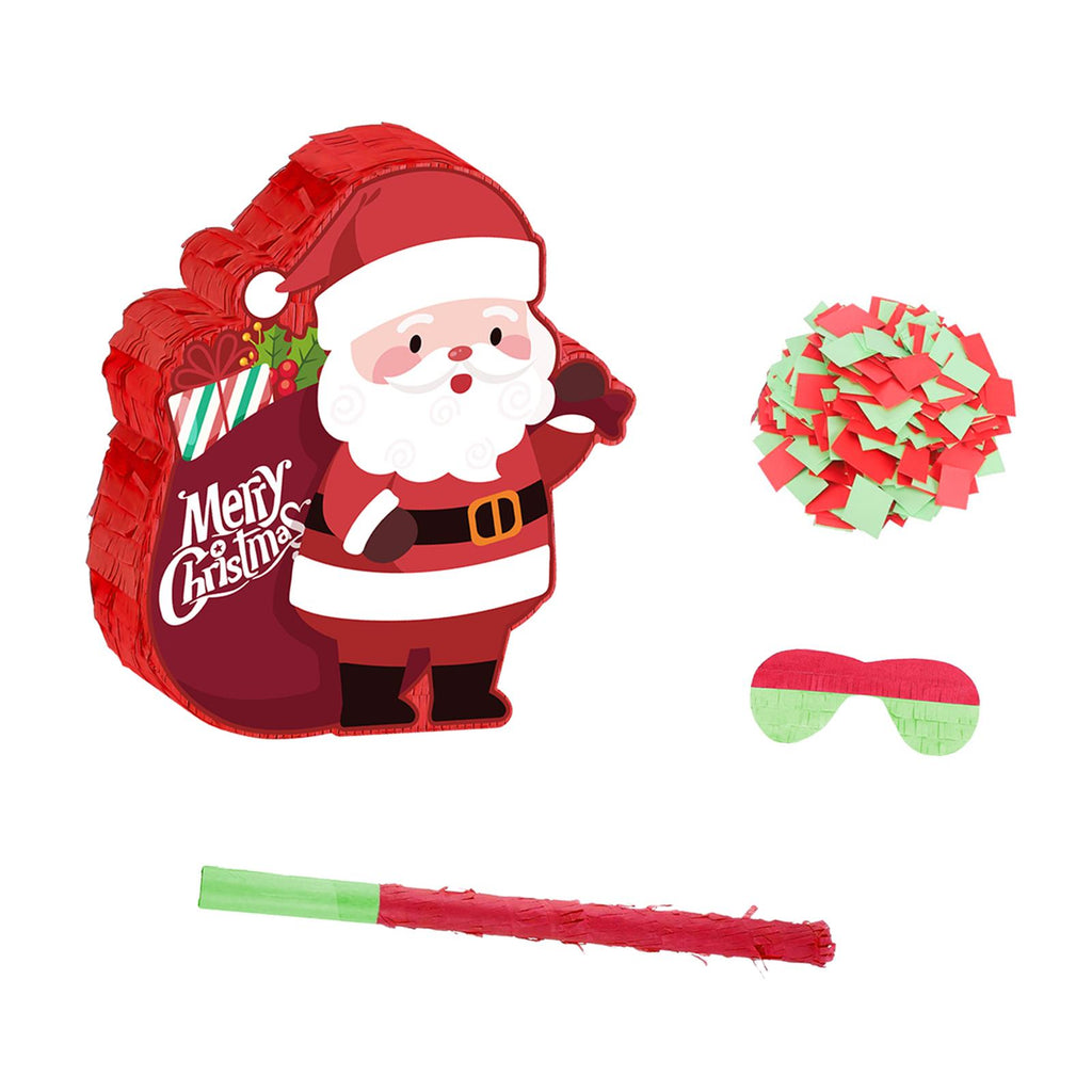 - Complete Party Set: This convenient kit includes 1 Santa Pinata, 1 piece blindfold, 1 piece rod, 1 pack colorful confetti (colors are random). Everything you need for the classic piñata game is here