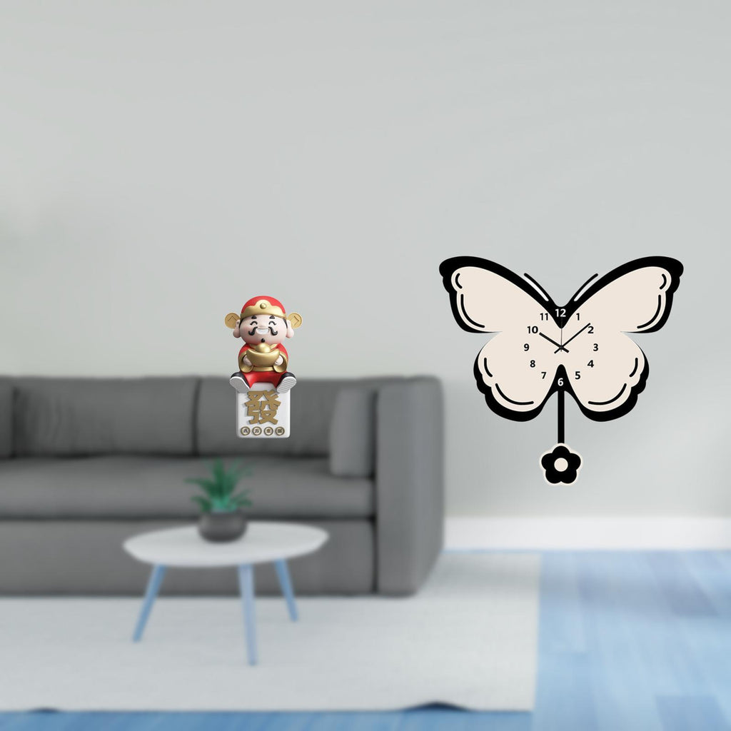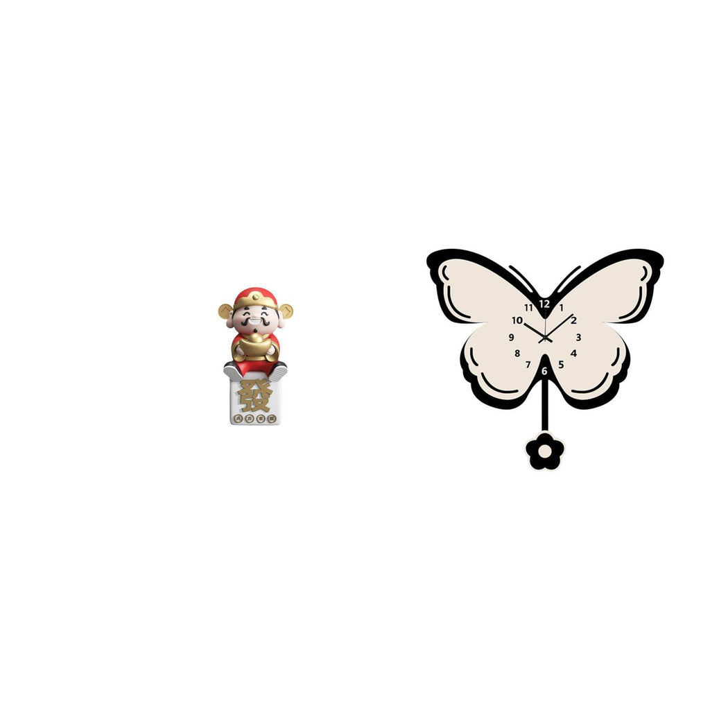 - 【Creative Design】 Cartoon god of fortune figurine and butterfly wall clock feature unique and interesting details that enhance home decoration 2. 【 Material】 High quality resin and acrylic materials ensure sturdy and use for both figurine and clock 3. 【Versatile Decor】 Suitable for bookshelf desk living room bedroom cabinet office and various corners of your home 4. 【Great Gift】 Perfect for friends family and relatives for New Year festivals birthdays and other occasions 5. 【Easy Use】 Simple installation and maintenance make these ornaments convenient for everyday enjoyment