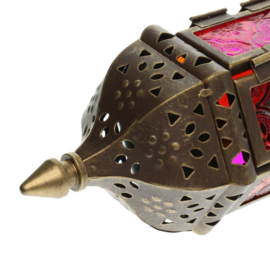 Maxbell Set 3 Pieces Retro European Iron Hanging Lantern Decorative Candle Holder with Mosaic Design Glass Panels