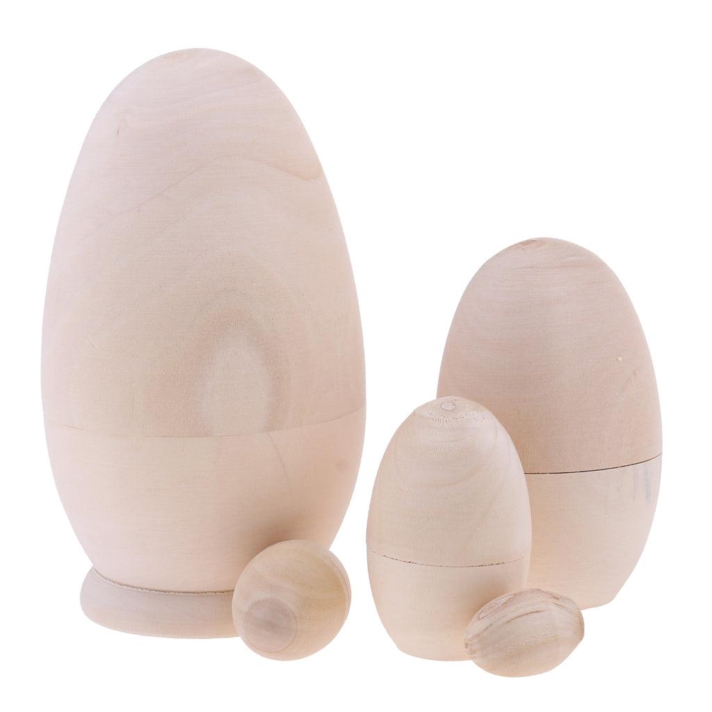 Maxbell Set of 5PCS Unfinished Wooden Blank Unpainted Russian Nesting Dolls Babushka Matryoshka Stacking Doll Kids DIY Crafts