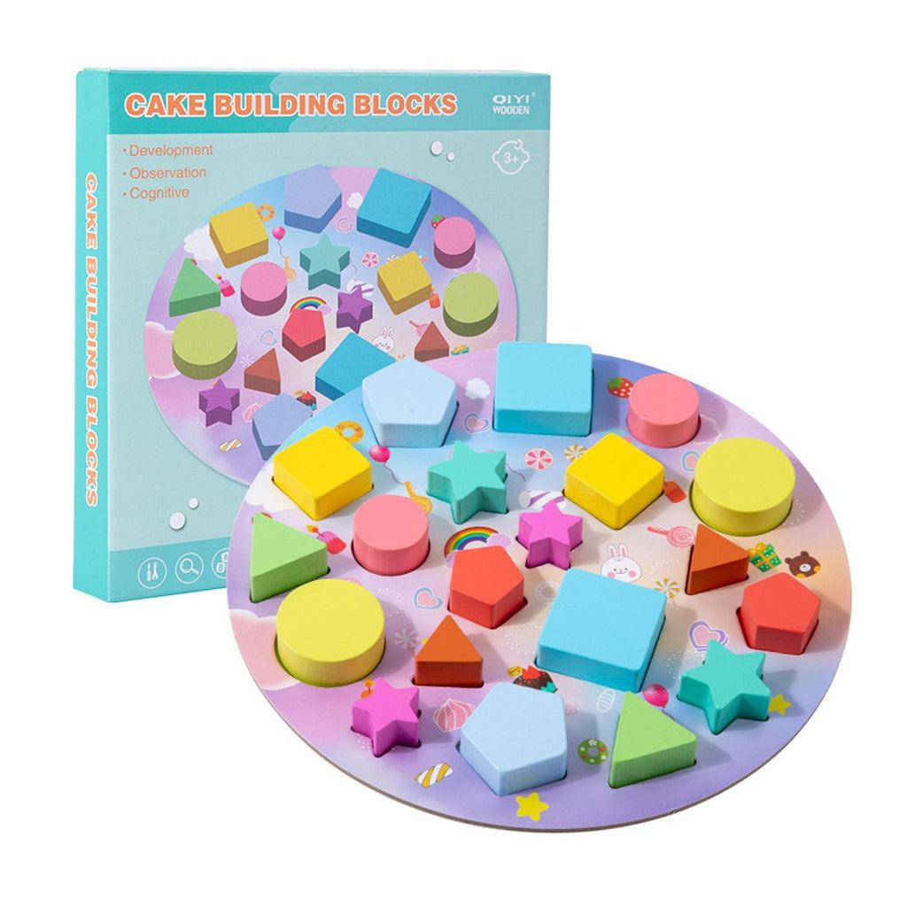 - 【Innovative Design】: Wooden Shape Sorter featuring a cake themed vibrantly colors and fun, familiar shapes, encouraging hours of interactive play