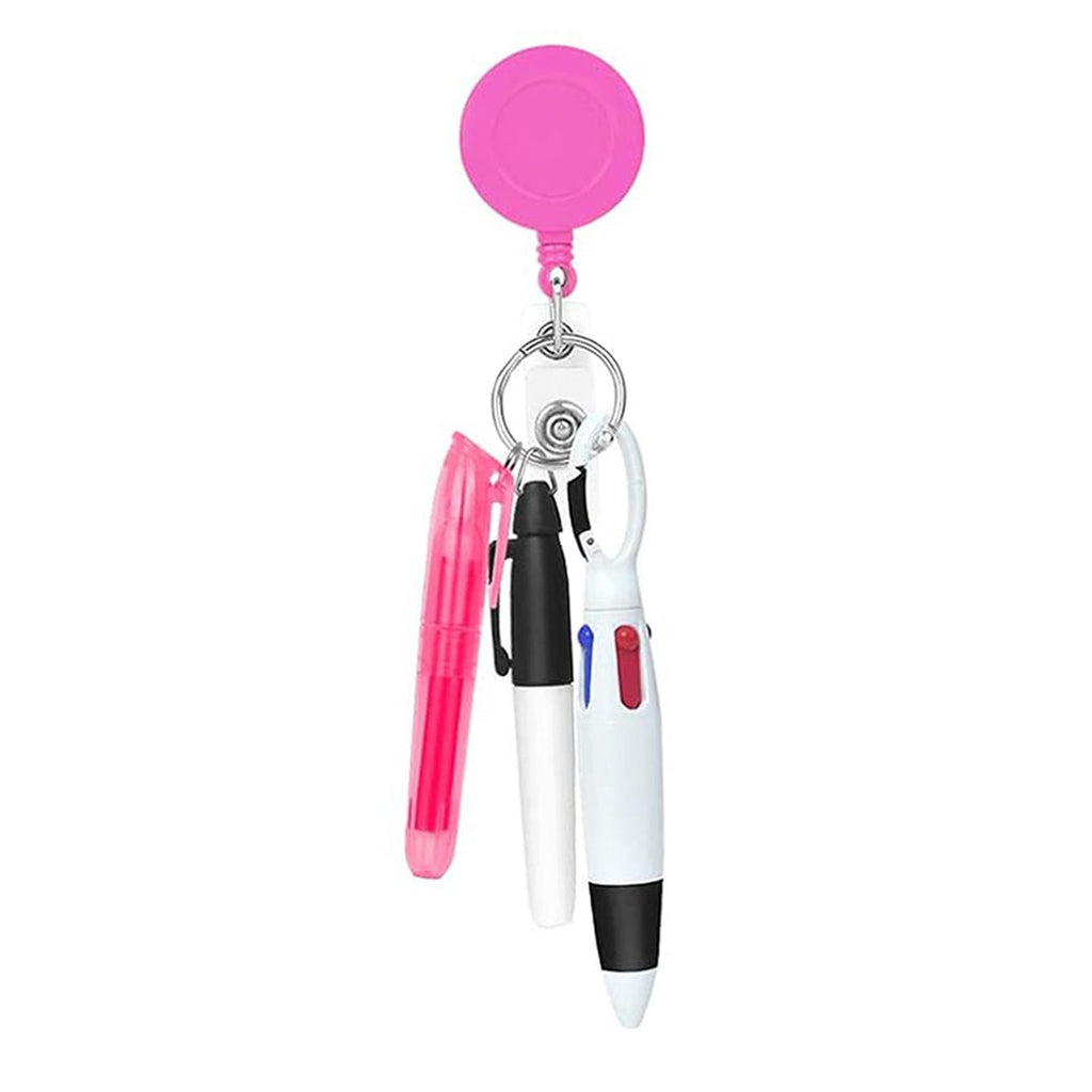 【Nurse Pen Set】: This nurse shuttle pen set includes 1 Multi Color Ballpoint Pen, 1 Pen, 1 Large Head Pen, 1 Retractable Badge Holder making it easy to carry wherever you go.
