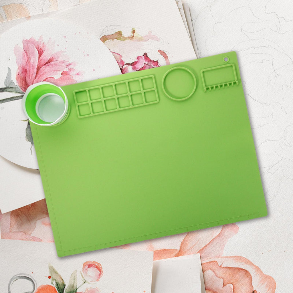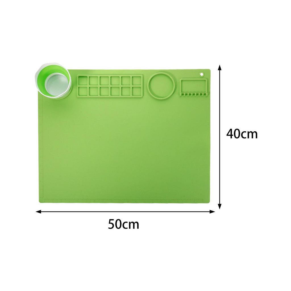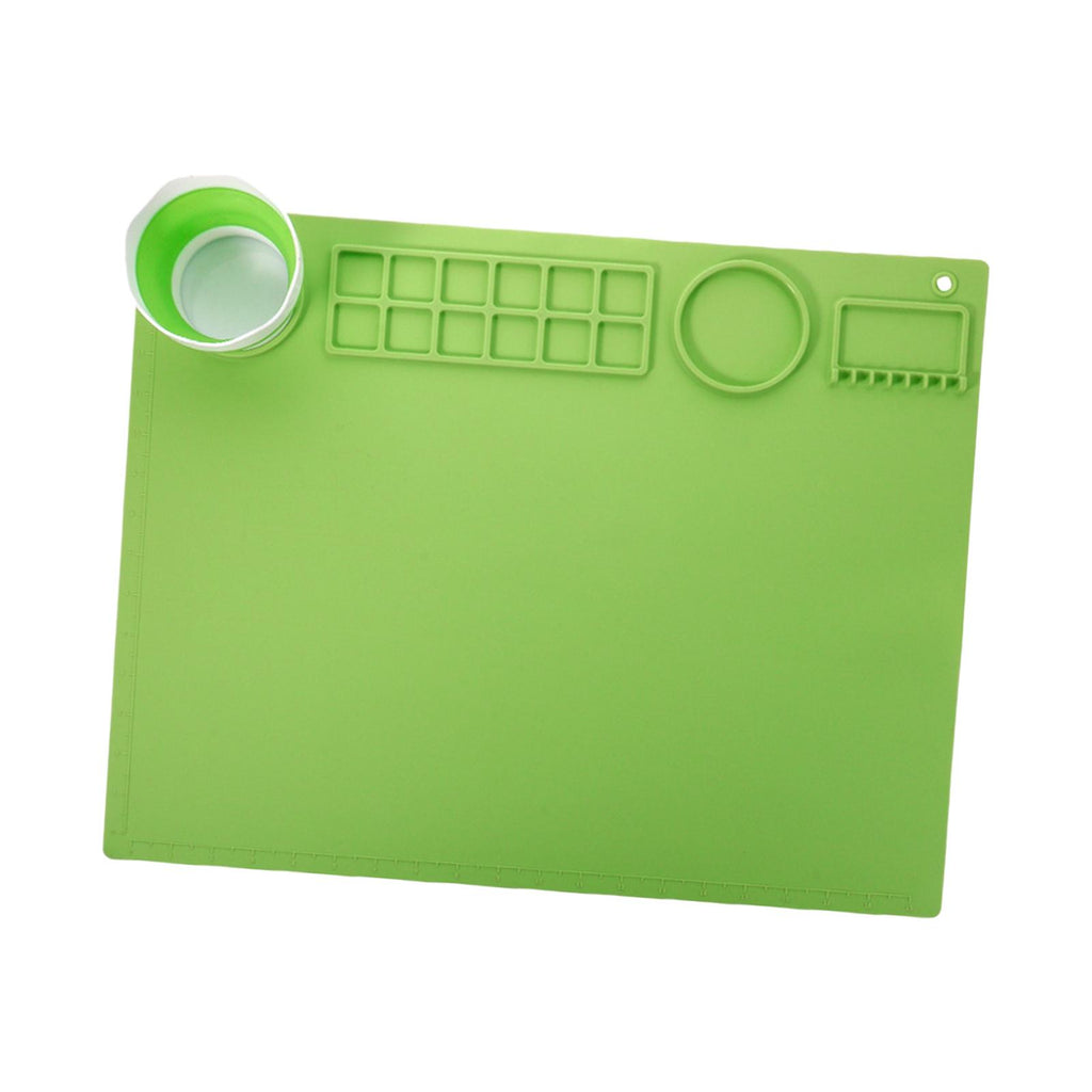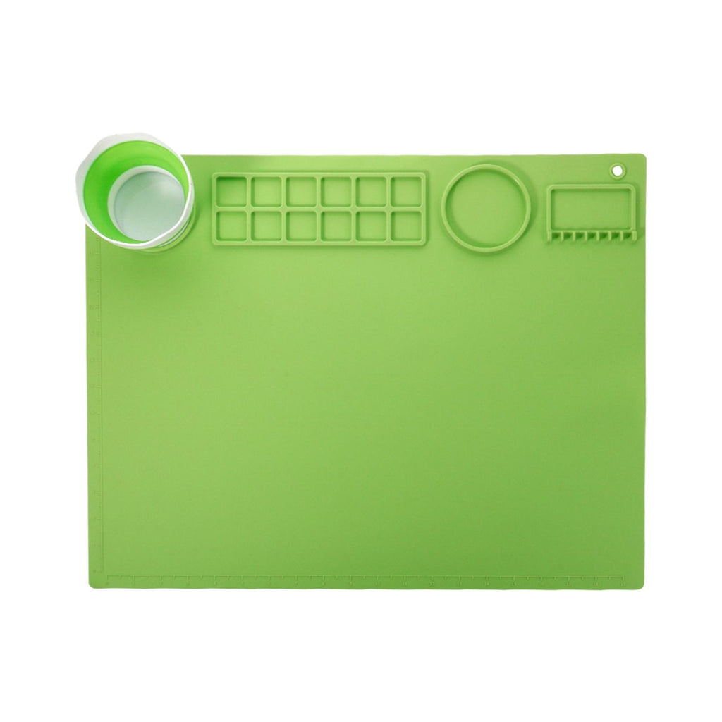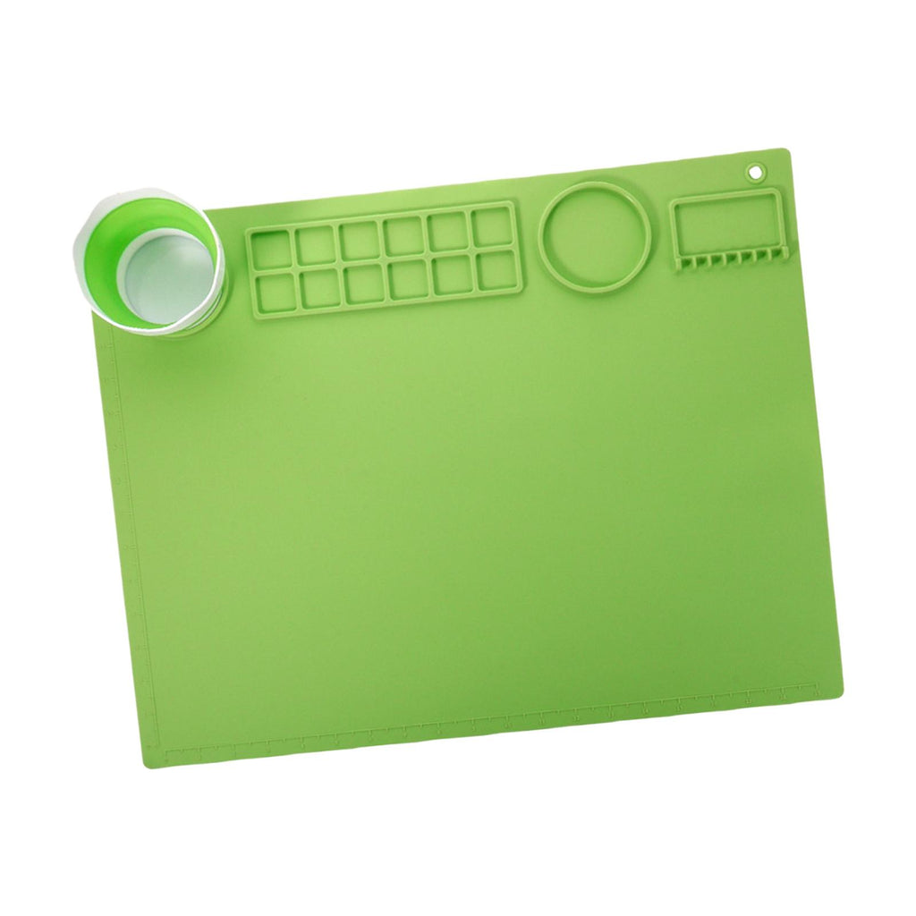 Maxbell Silicone Painting Mat with Cup 19.69"x15.75" Silicone Art Mat for Art Create Green