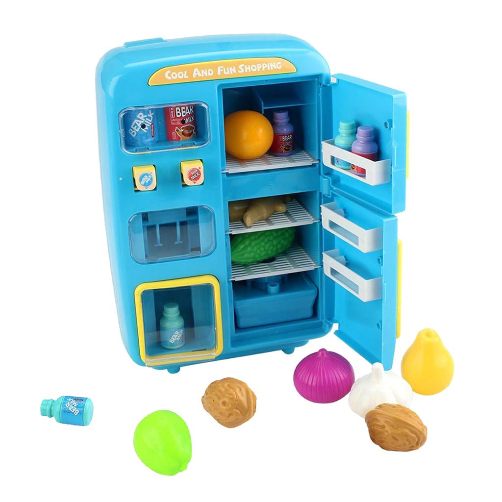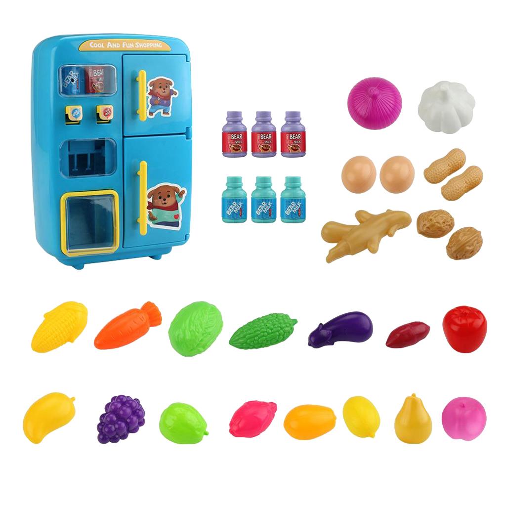 Electric Simulation Refrigerator Vending Machine Kitchen Toy Gifts 30 Pieces Plastic Foods Set.