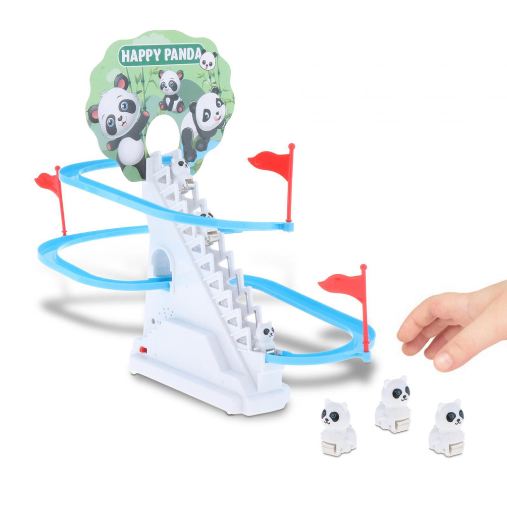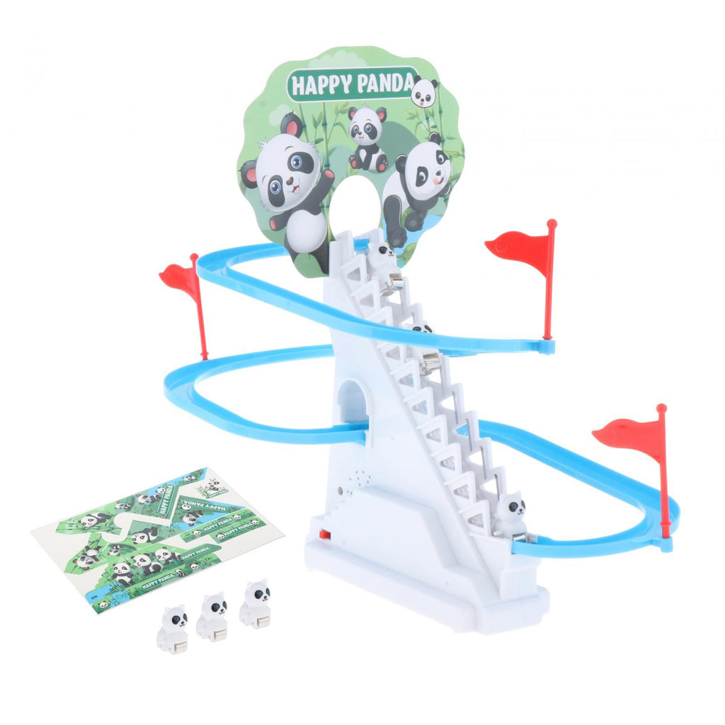 【Slide Toys Set】: Creative funny panda climbing the stairs and slide down.