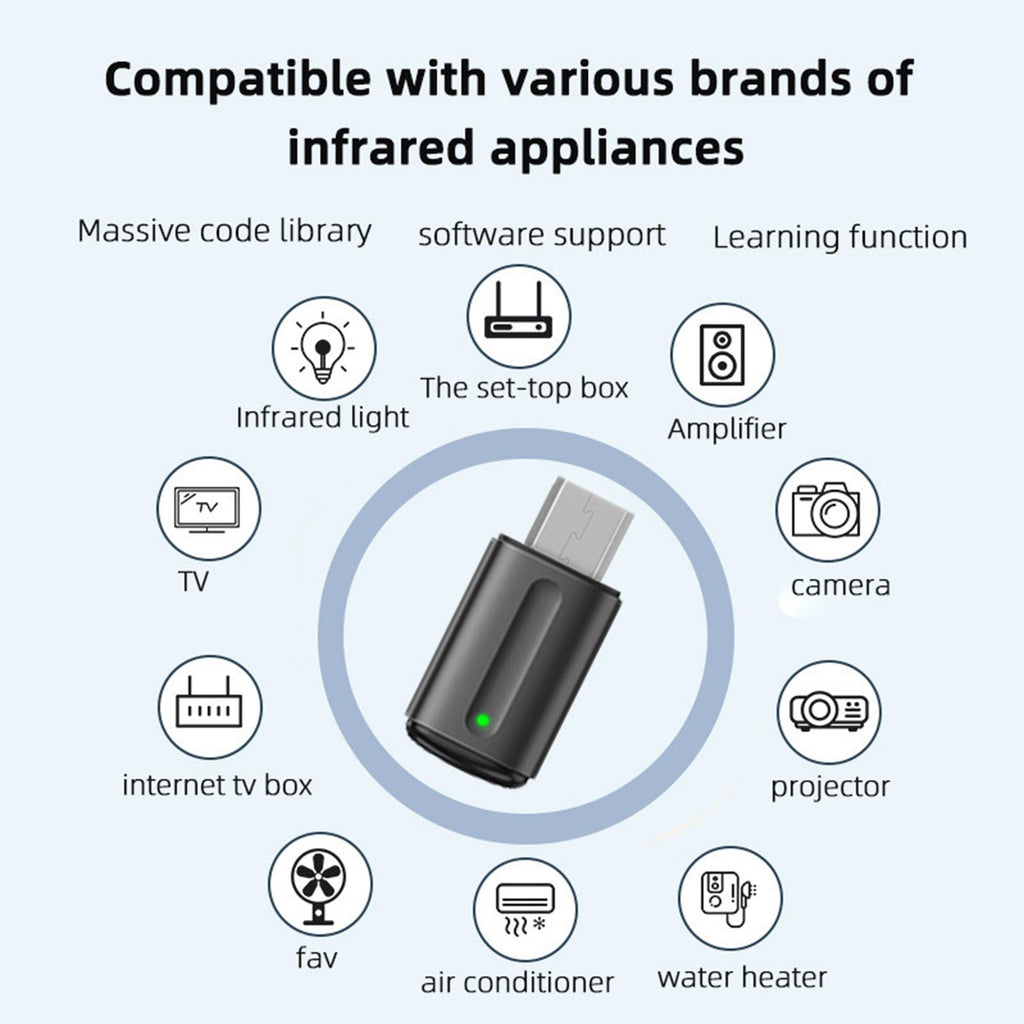 【Easy to Use】Mini Smartphone IR Remote Controller Adapter, plug and play, no harm to the phone. With green indicator light and voice function, more convenient to use