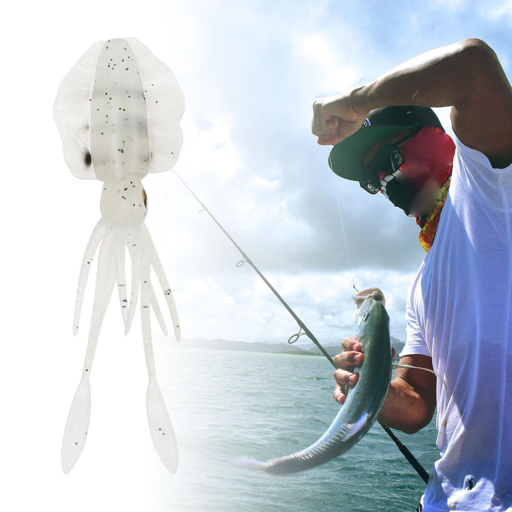 Maxbell Soft Fishing Lure Artificial Durable Fishing Tackle Vivid Elastic Squid Bait White Luminous
