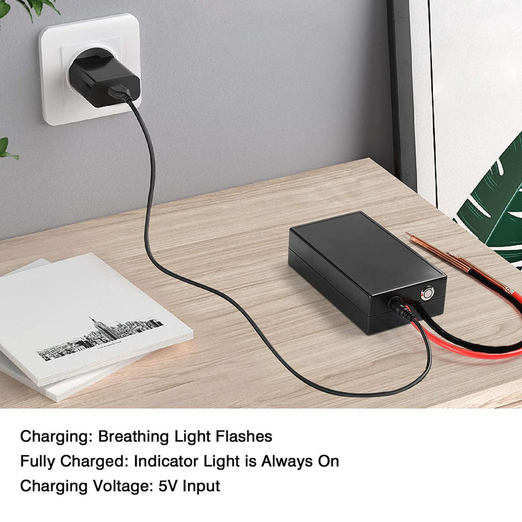 【5300mAh Large Capacity】: Mini spot welder, low power consumption, long use time after fully charged, it can also easily your mobile phone, portable and lightweight.