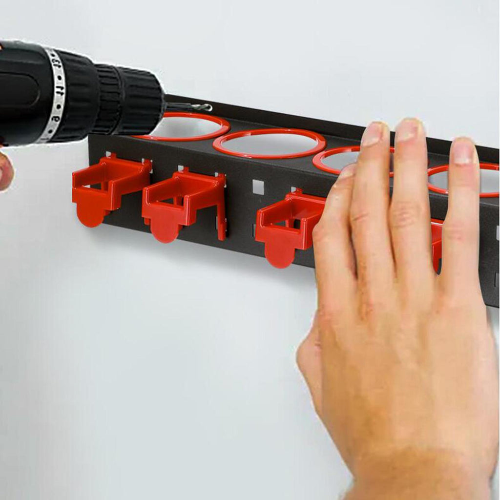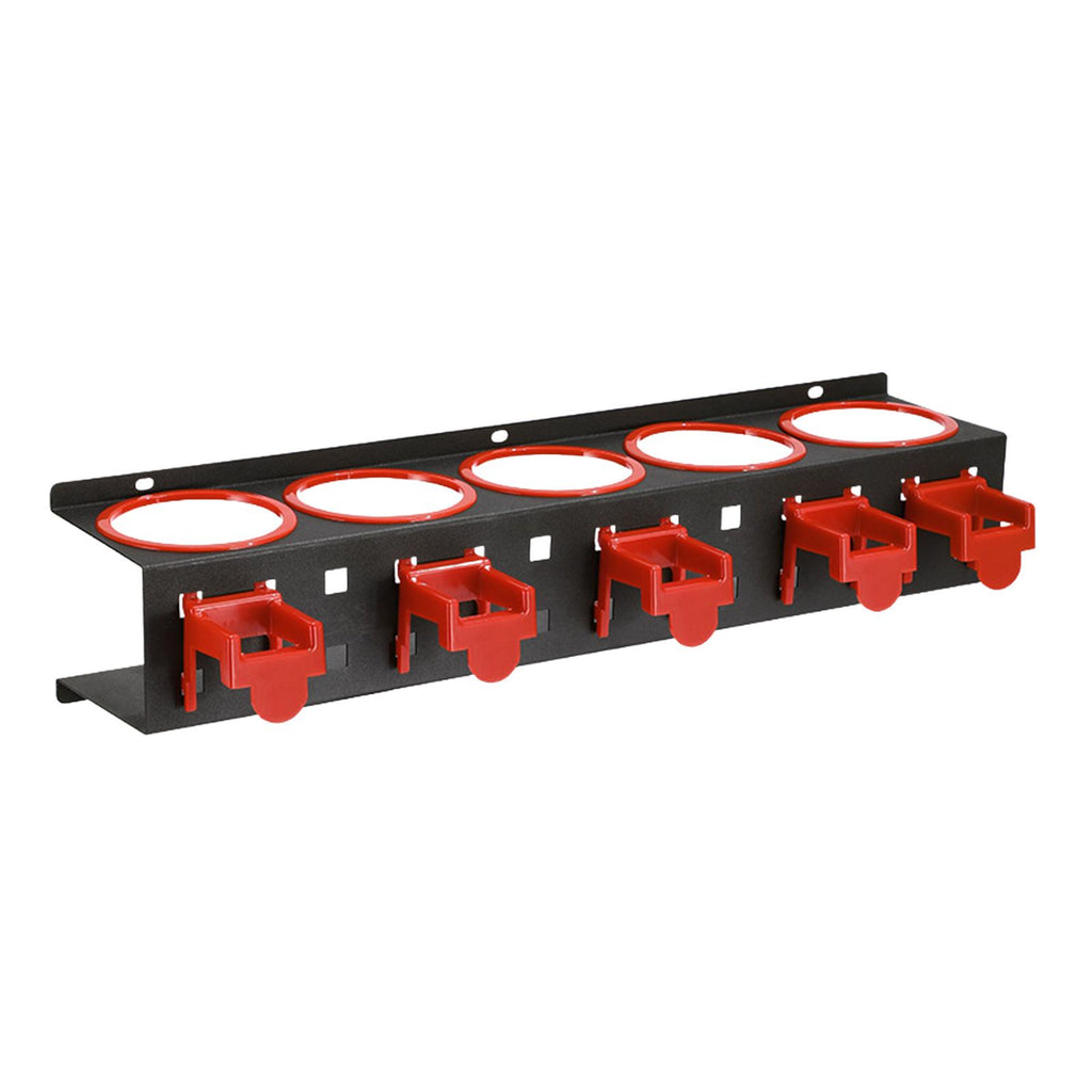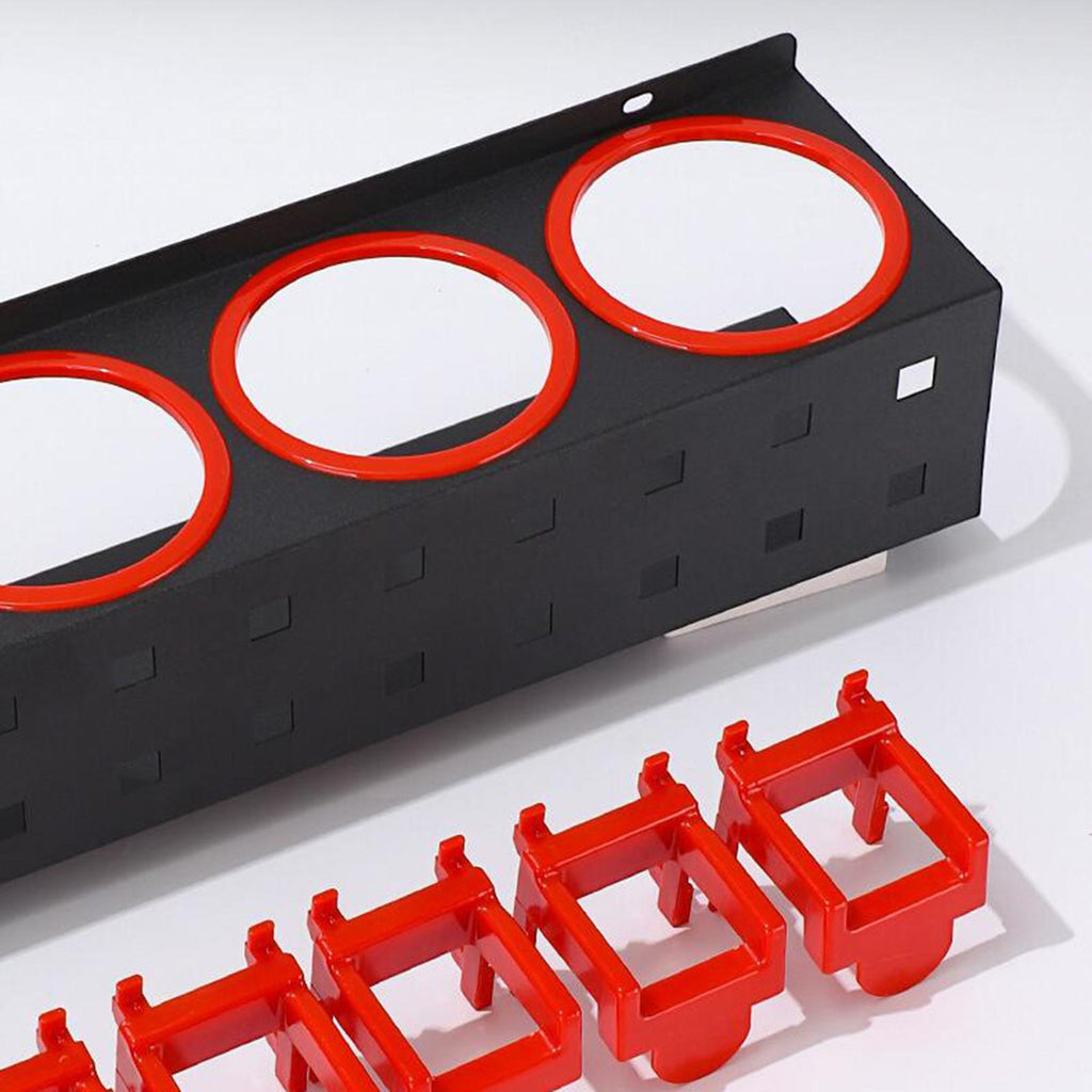 【Spray Bottle Storage Rack】: Mini round bottle holder, round hole with red edging to avoid wear and tear on tools caused by repeated use. Red and black match, simple and beautiful appearance. Make the space tidy and bright.