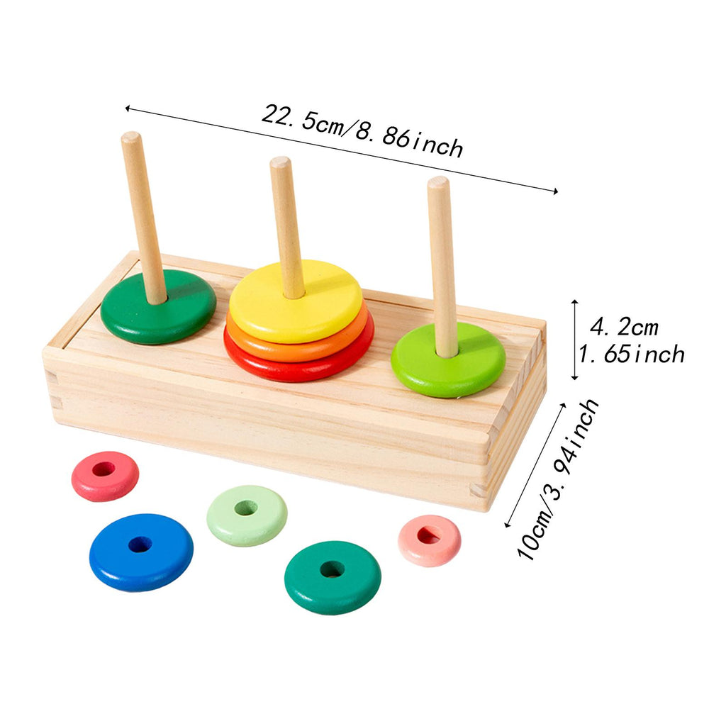 【Simple to play】: the child moves a rings at a time, places each small rings on the larger rings, and places all the disks on the beads to complete