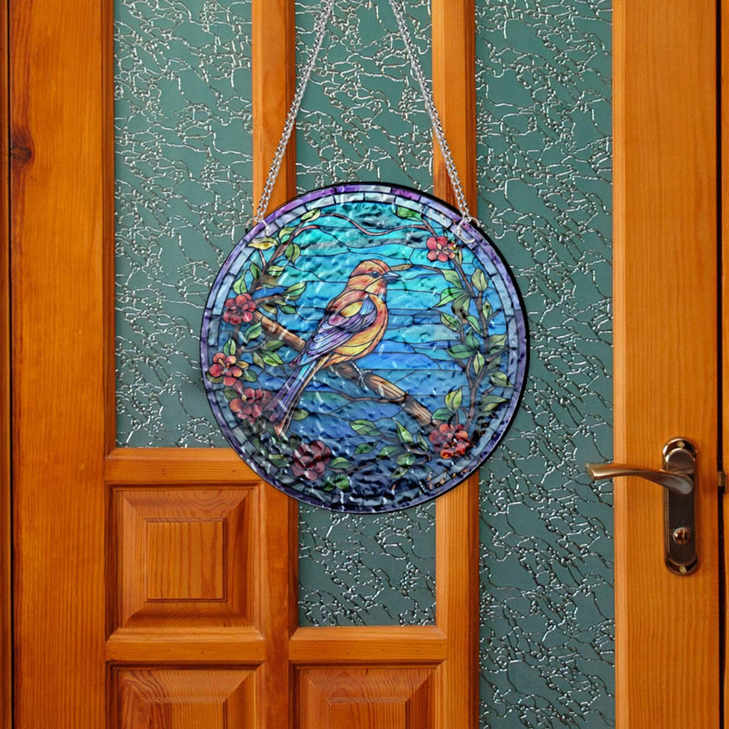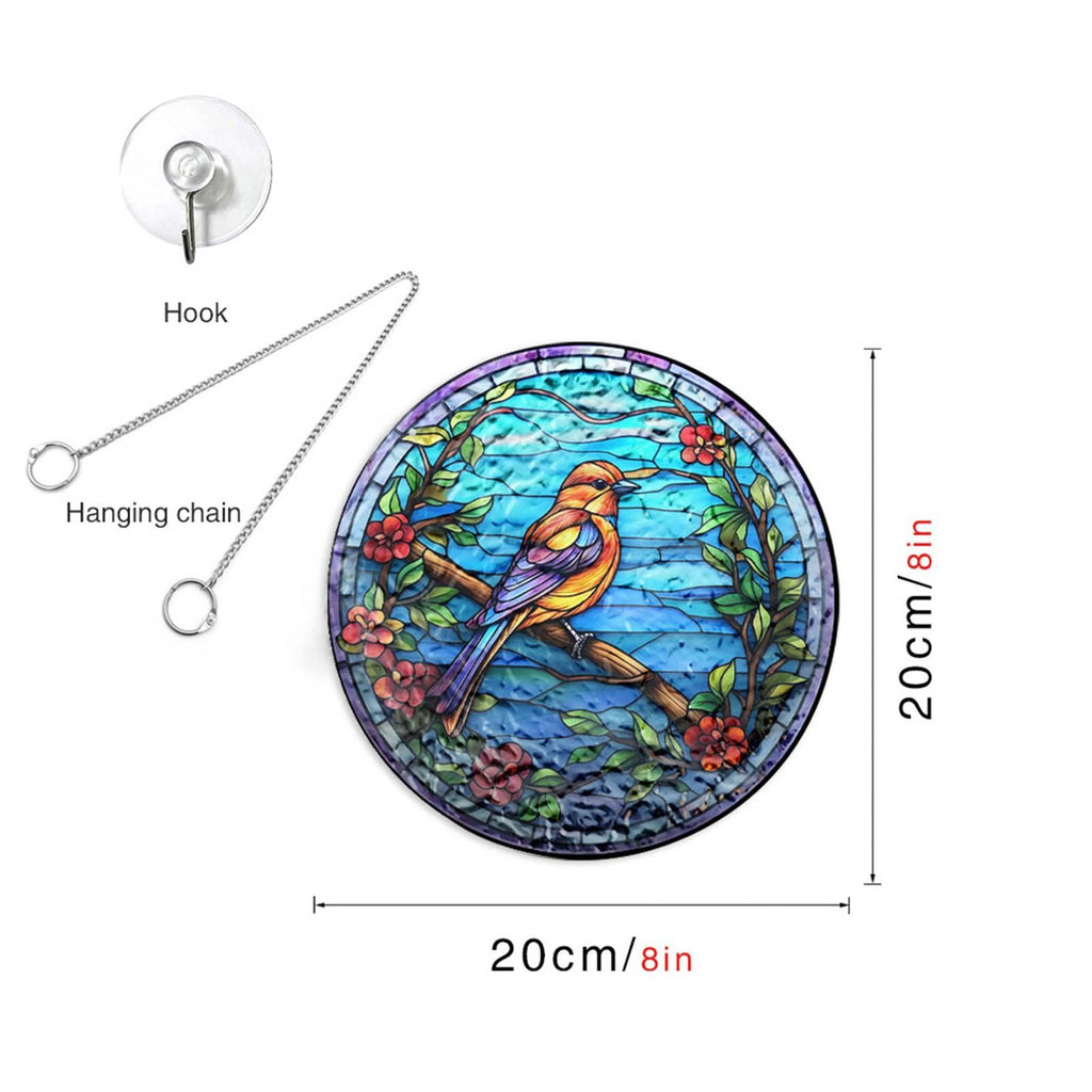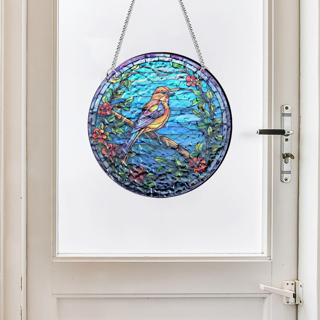 Maxbell Stained Glass Window Hanging Decor Panel Bird Ornament for Home Bedroom Door Style B