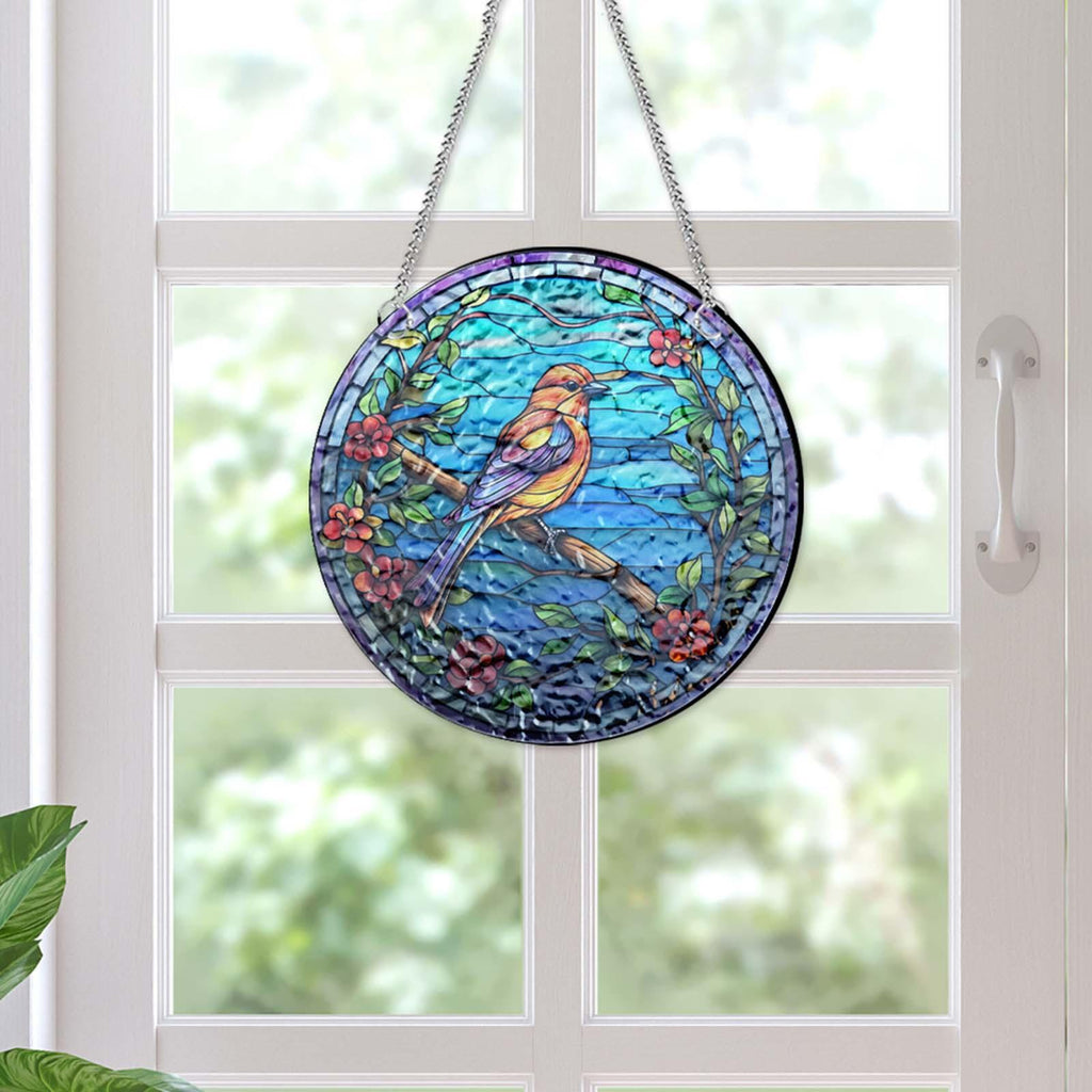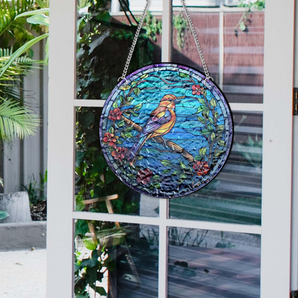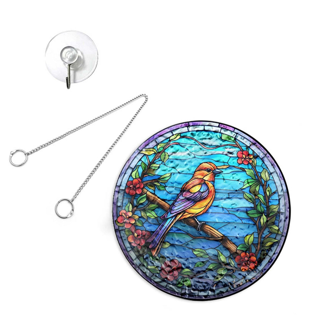 Maxbell Stained Glass Window Hanging Decor Panel Bird Ornament for Home Bedroom Door Style B