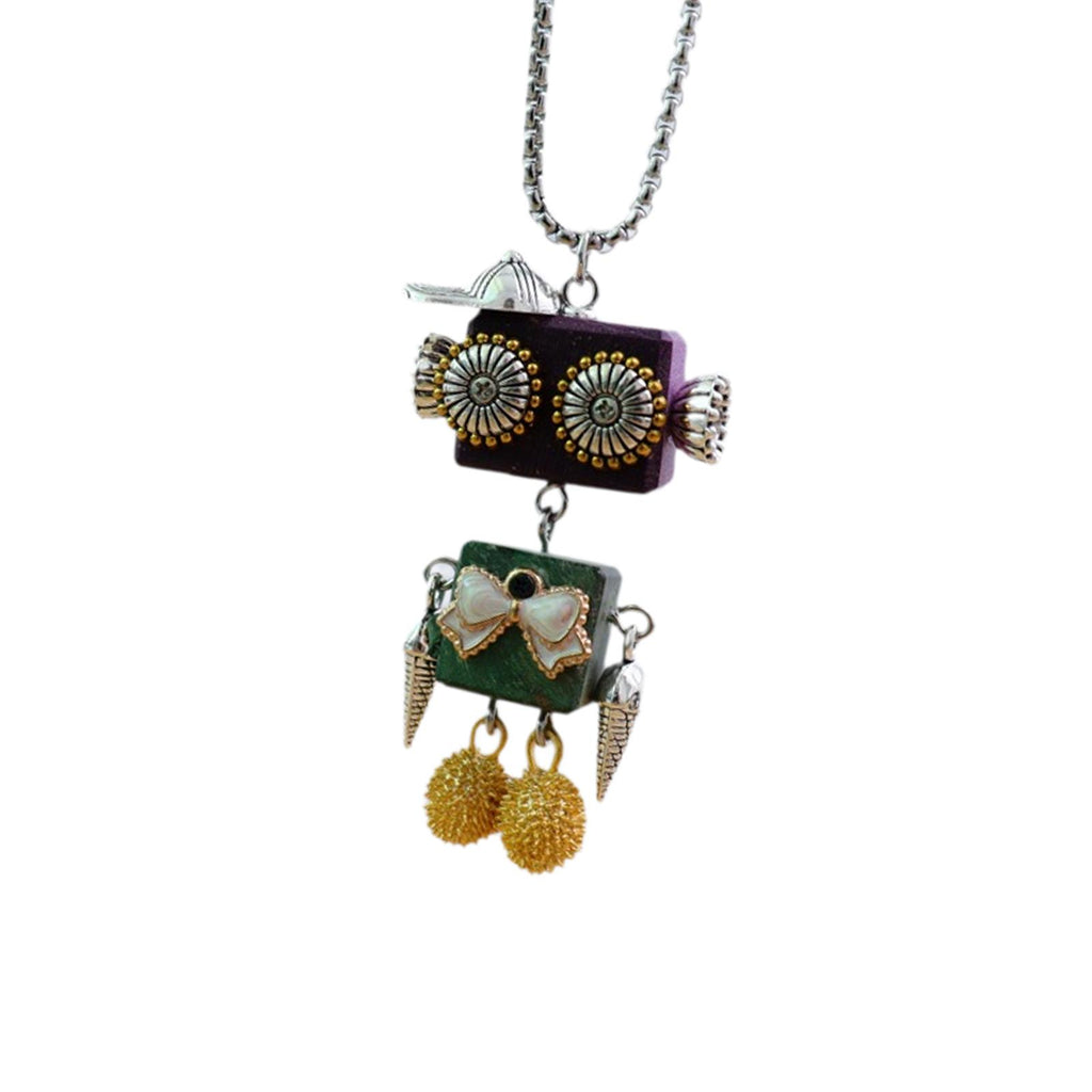 Maxbell Steampunk Robot Necklace Trendy for Women Girls Kids Girls Boys Thanksgiving Green