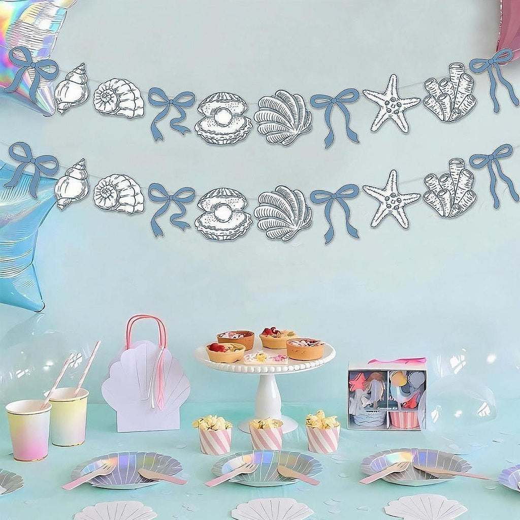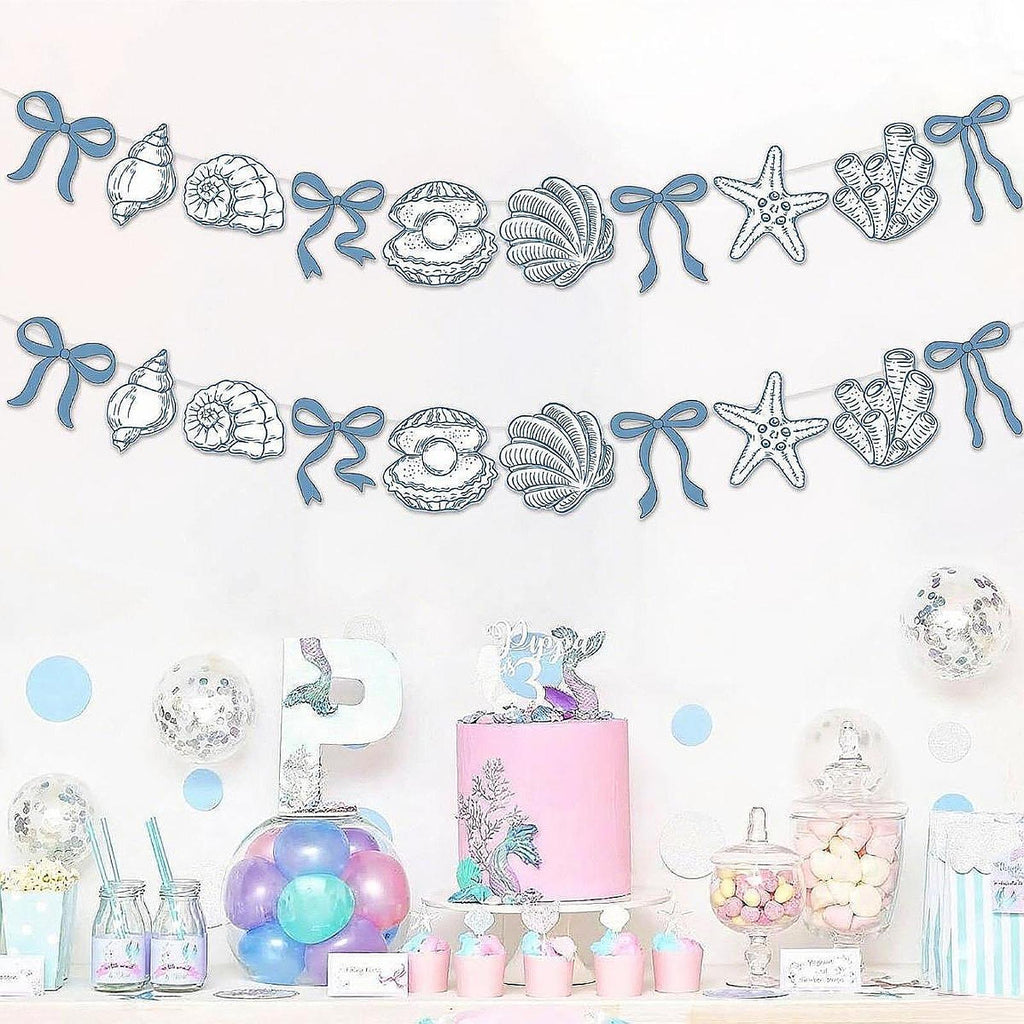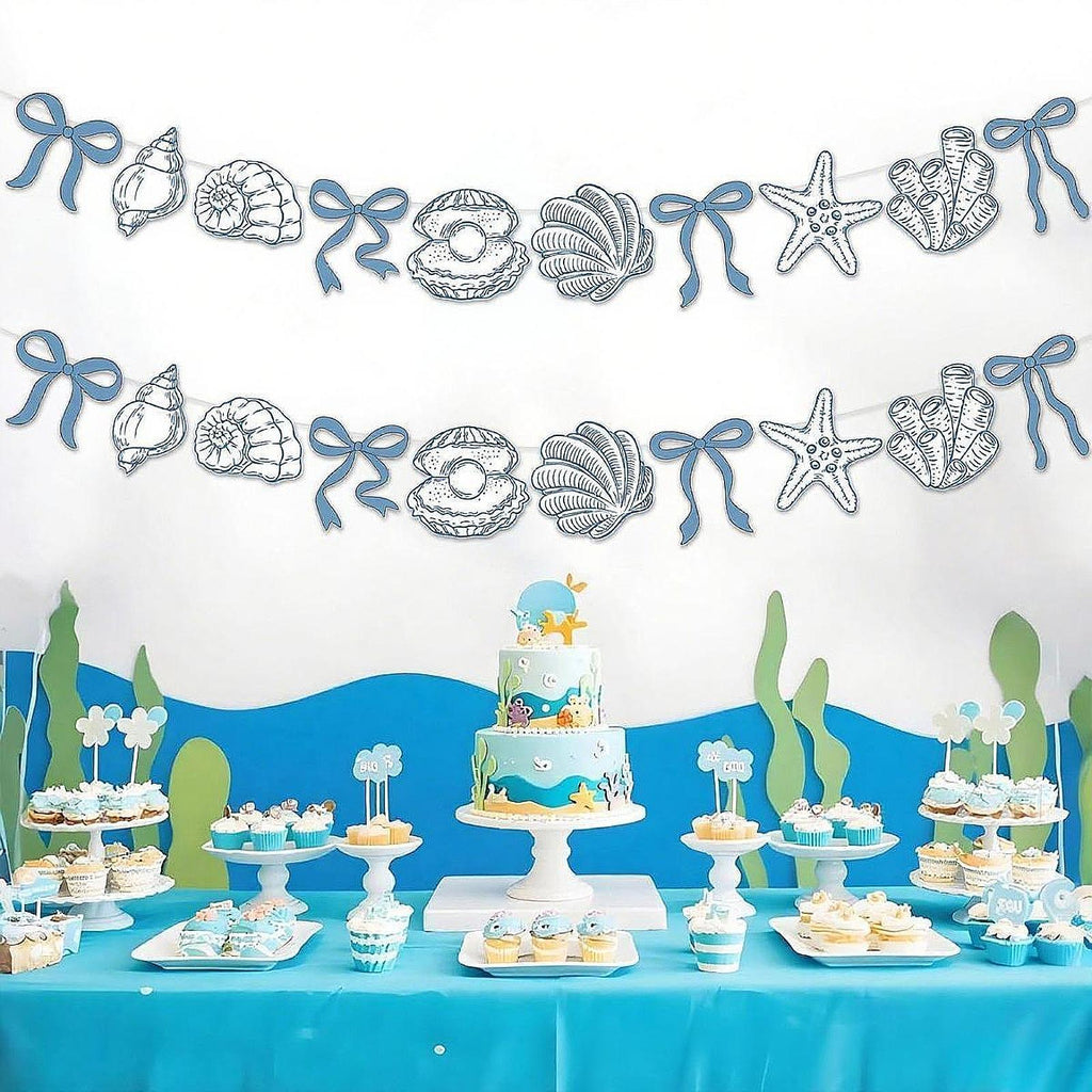 Maxbell Summer Banner Seashells Decor Party Supplies for Birthday Baby Shower Summer Blue