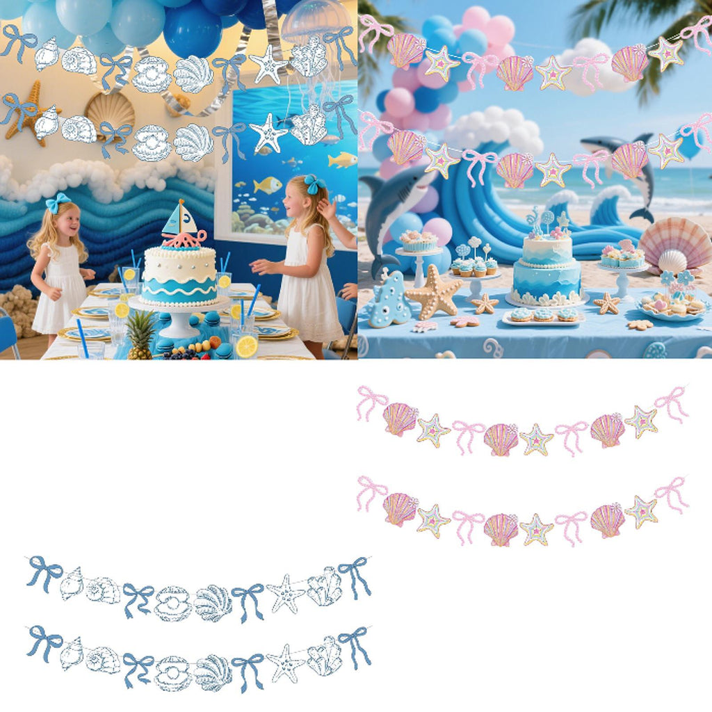 - 【Versatile Ocean Aesthetics】: The bow starfish and shell garlands are suitable for beach themed parties, summer celebrations, beach weddings, school organized ocean themed days or other related events; They can be applied as a backdrop for photography or hung on mantelpieces, curtains, balconies, walls, and porches