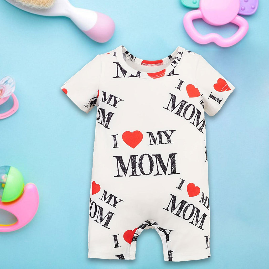 【Fashion Jumpsuit】:Classic i love mom printed baby jumpsuit outfits clothes featuring button and snaps for easy diaper changes and easy taking on and off.