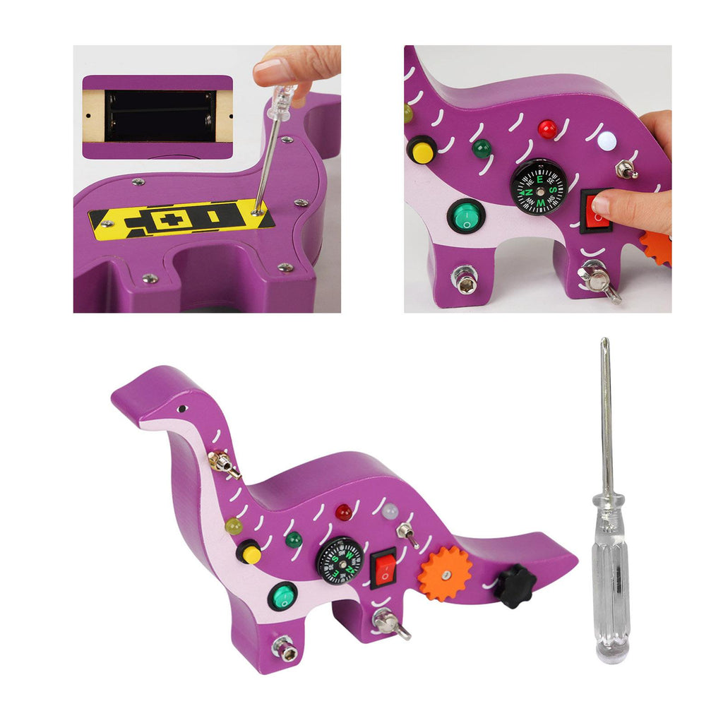 【LED Light】: Switch Busy Board with different switches and LED Lights helps children to press buttons, rotating gears, switch on/off, compass,and screws and nuts.