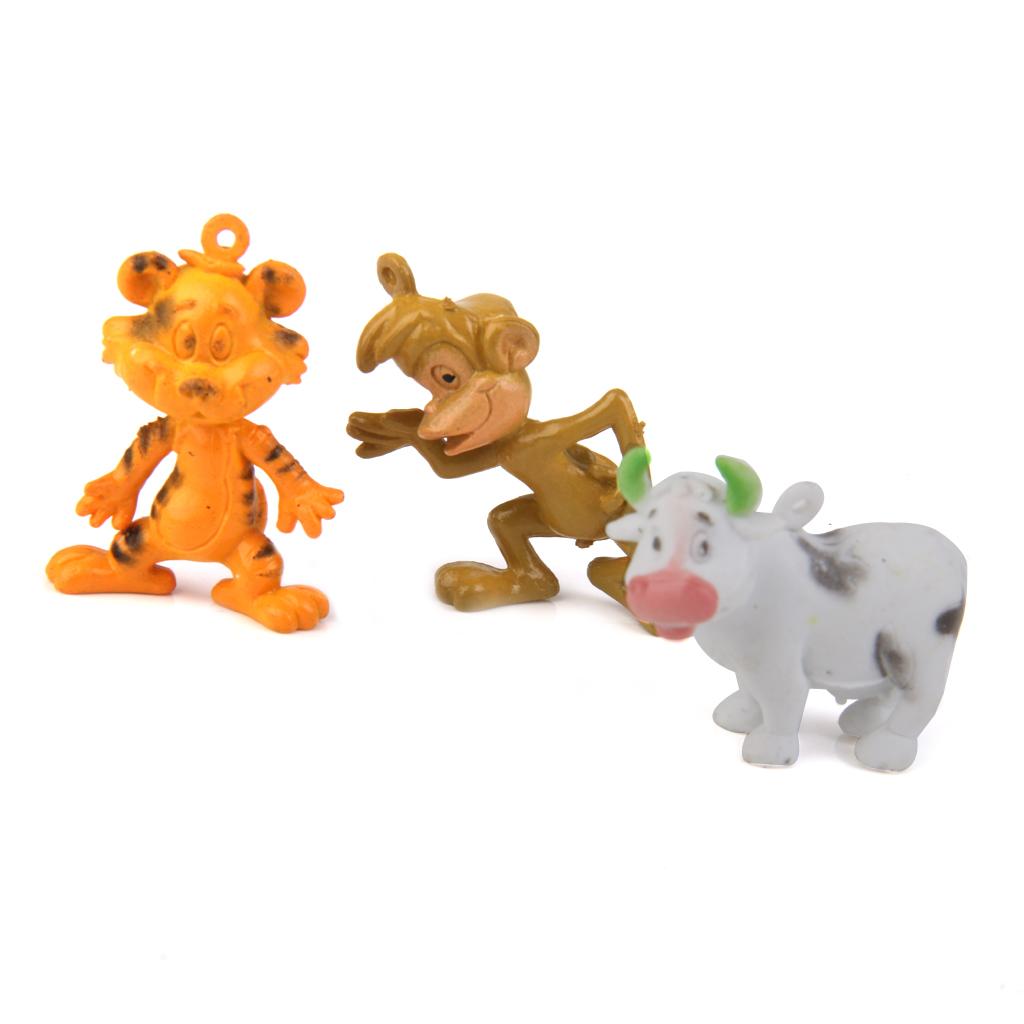 This is a set of twelve zodiac animal plastic toys. Contains 12 characters, Rat,Ox,Tiger,Hare,Dragon,Snake,Horse,Sheep,Monkey,Cock,Dog,Boar.