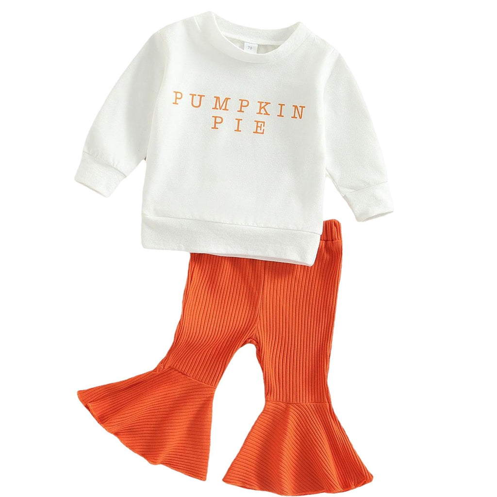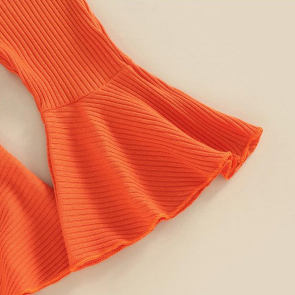 Design: Halloween little girl clothes cute Long Sleeved top and with letters printed, matching little girl flared pants suit, more fashionable and casual, easy to dress. Elastic waistband makes your girl more comfortable.