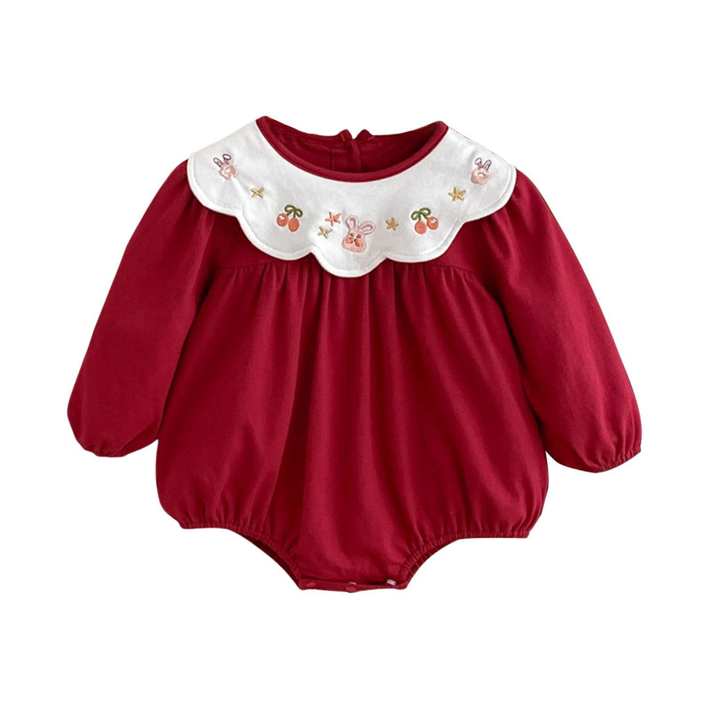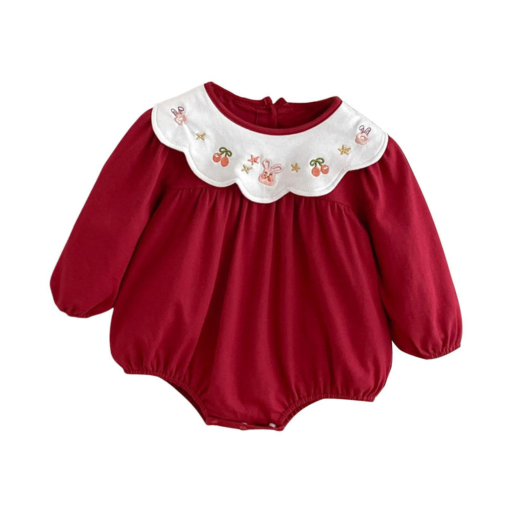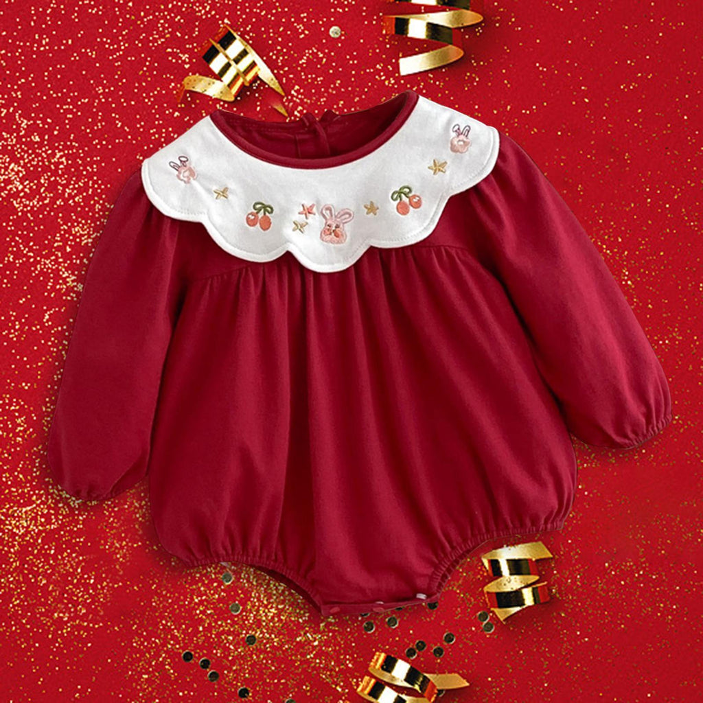 【Fashion Design】: The newborn romper is mainly designed in red, festive and fashionable, cute in appearance, with elastic bands on the cuffs and snaps on the crotch, which is easy to put on and take off