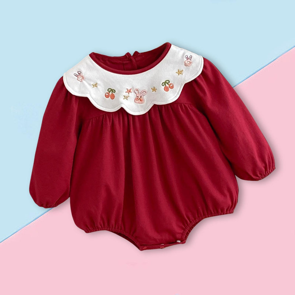 【Easy to Match】: Autumn bodysuit adopts a round neck long sleeve design, with embroidery on the neckline, suitable for autumn, and can be easily matched with different styles of socks, etc., to create a fashionable effect