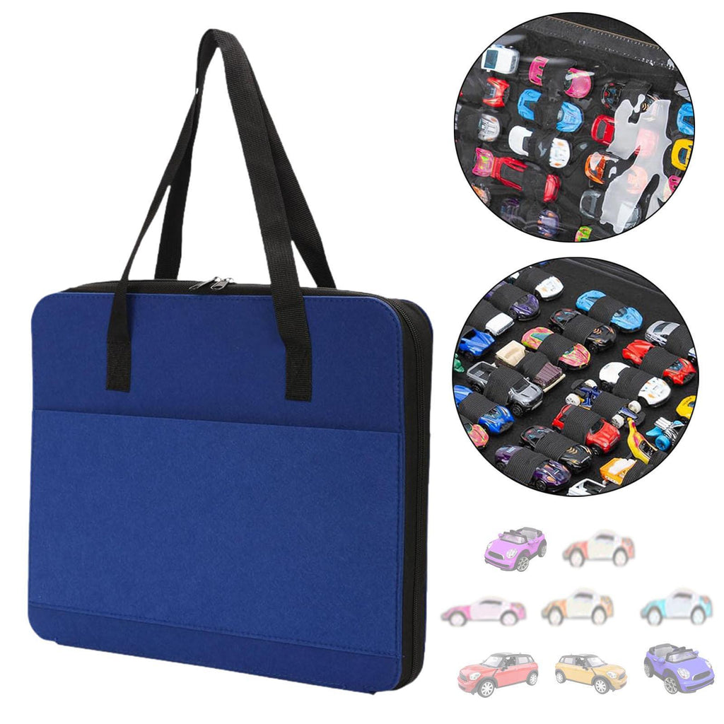 Maxbell Toy Car Organizer Case 52 Slots Felt Carrier for Kids Model Cars Collectible Blue