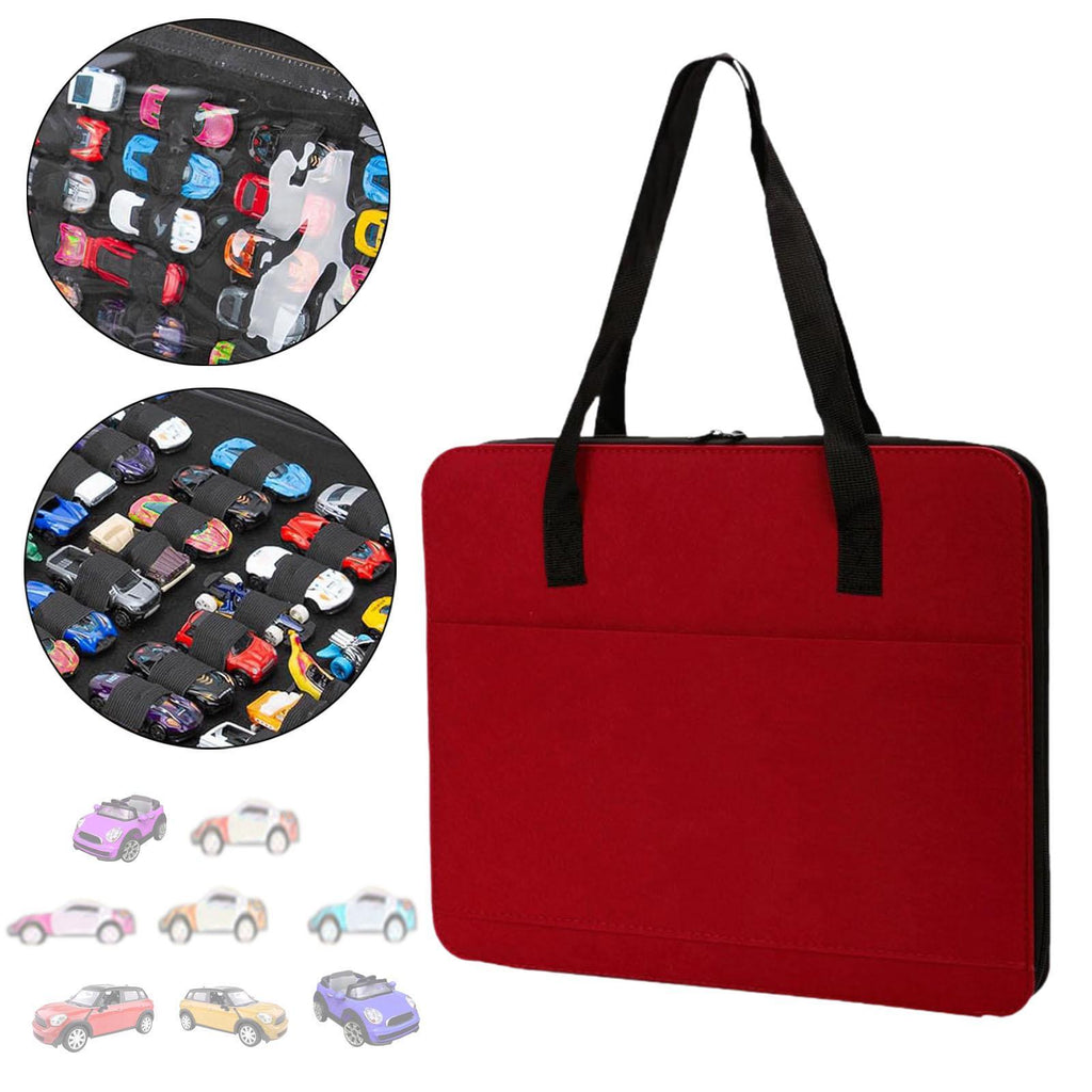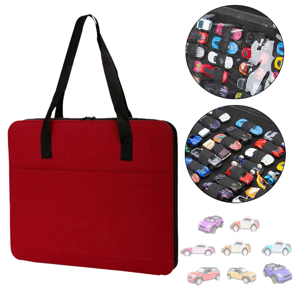 Maxbell Toy Car Organizer Case 52 Slots Felt Carrier for Kids Model Cars Collectible Red