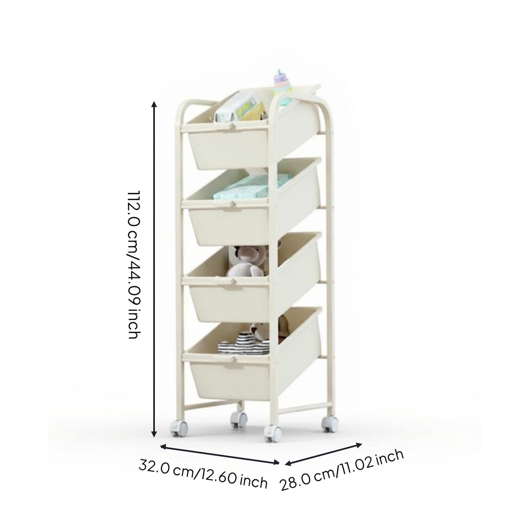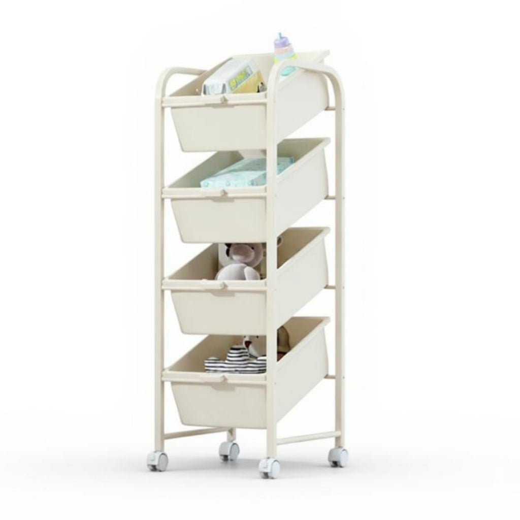 Toy Storage Organizer, Multi-tier Rolling Cart, Kids Book Rack, Mobile Milky White 4L 4B
