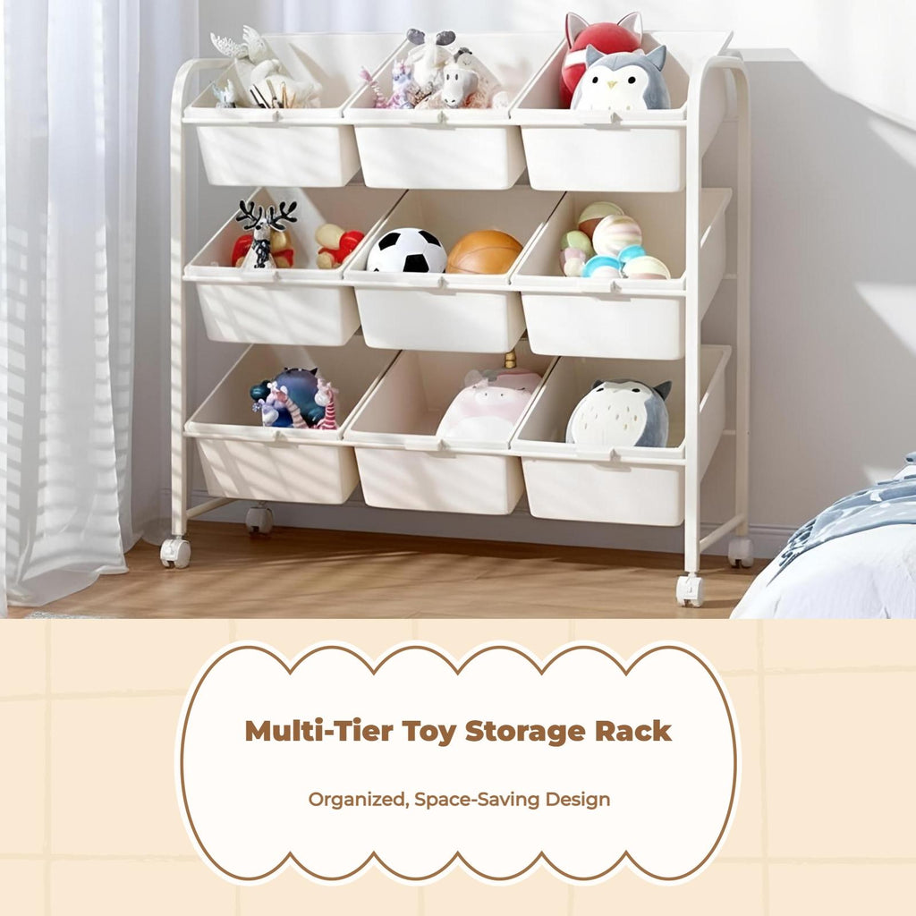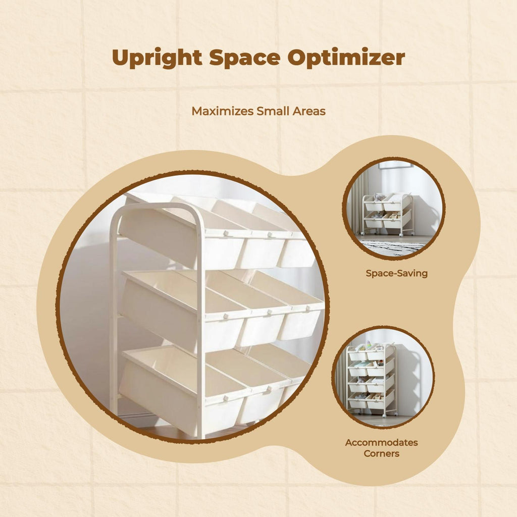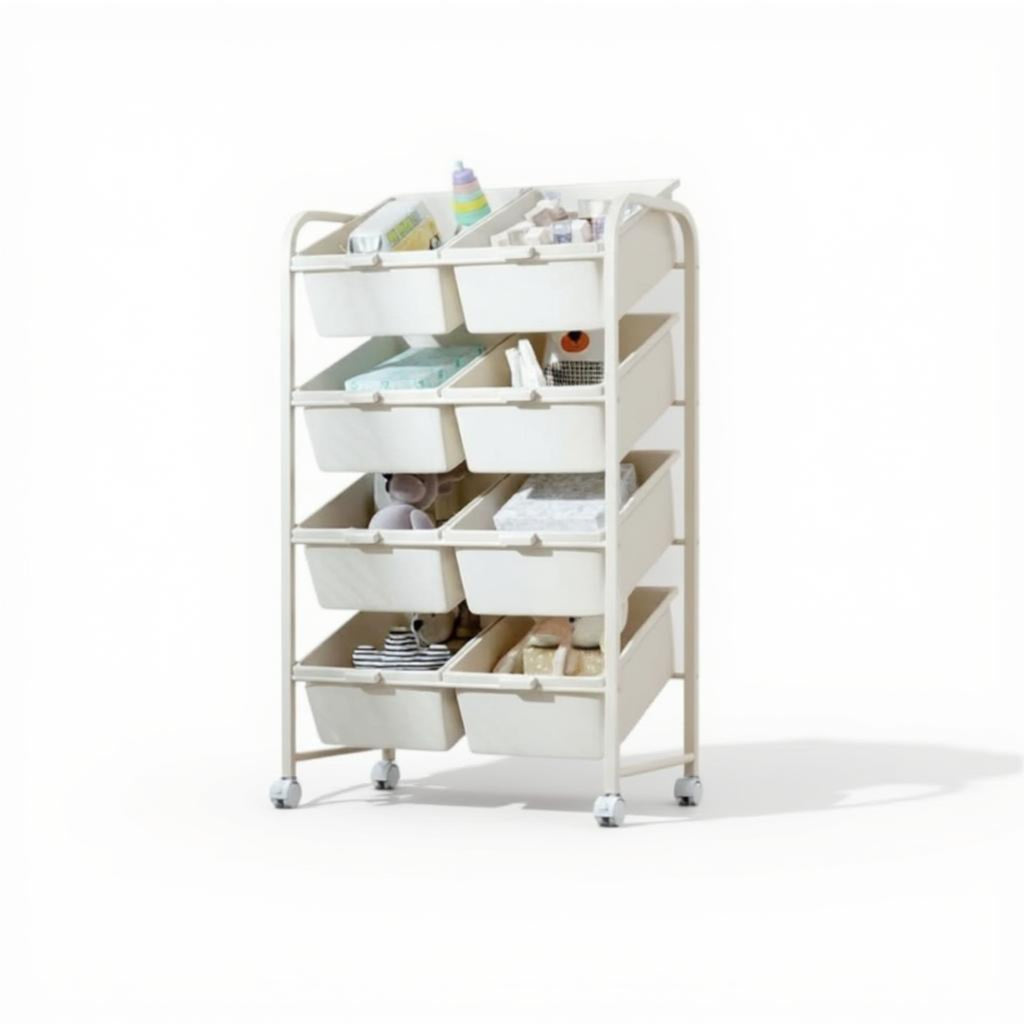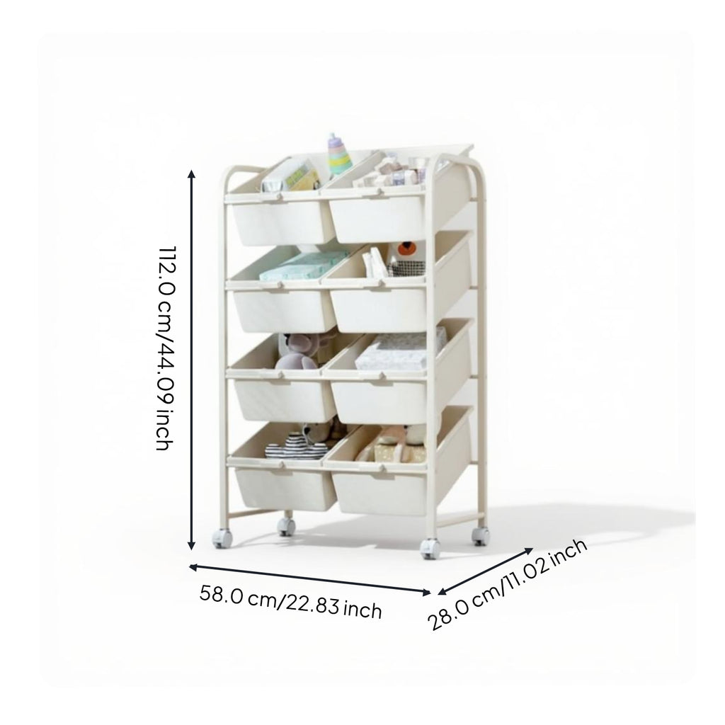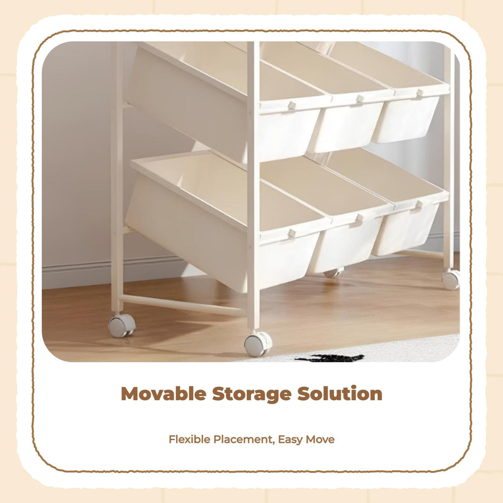 Toy Storage Organizer, Multi-tier Rolling Cart, Kids Book Rack, Mobile Milky White 4L 8B