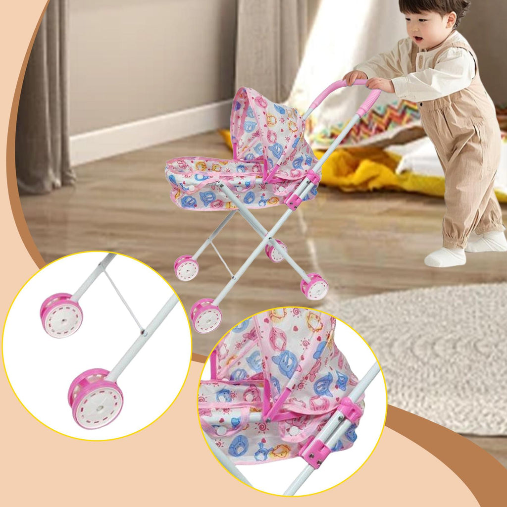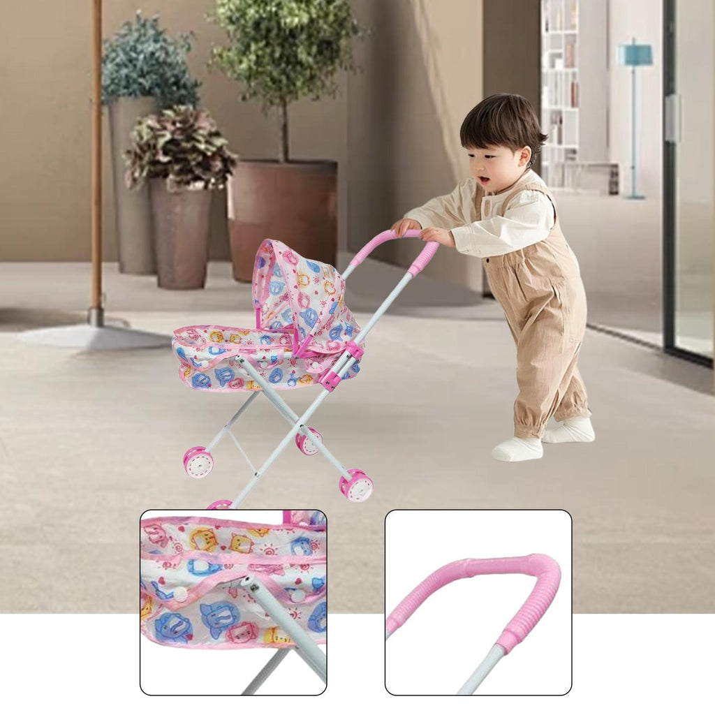 【Foldable】: The Pretend Play Doll Stroller can be easily folded, making it convenient to store when not in use