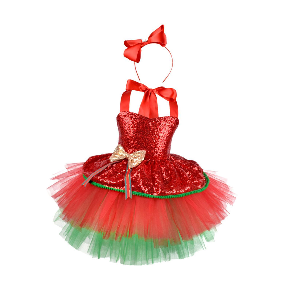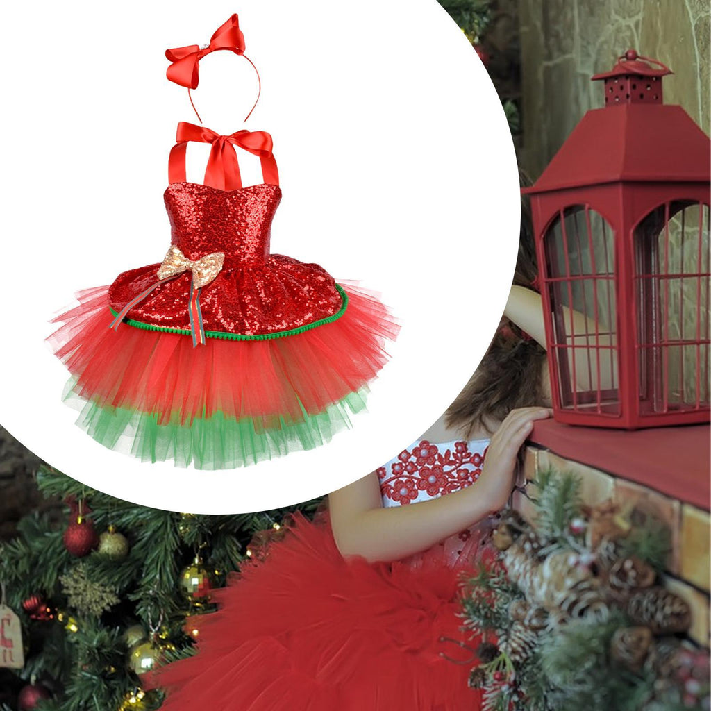 【Cosplay Set】Christmas tutu dress for girls includes tutu costume outfit and headband, providing a complete outfit for your little girl's special occasion.