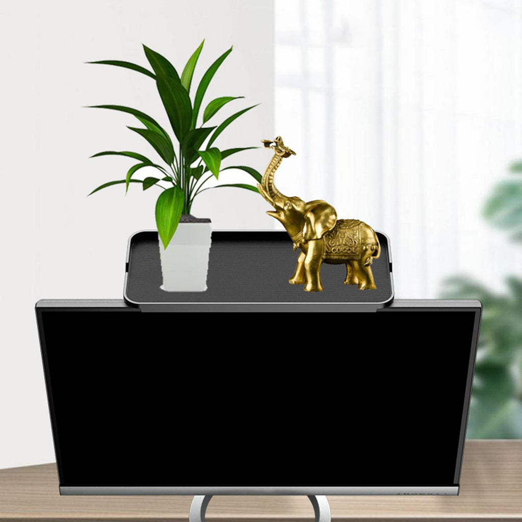 【Space Saving】This Monitor Storage Shelf is designed to provide a convenient and space saving solution for your electronic devices. Can hold remotes, WIFI, media boxes, speakers, pictures, small plants, and other small items, makes your desktop, TV cabinet clean and tidy.