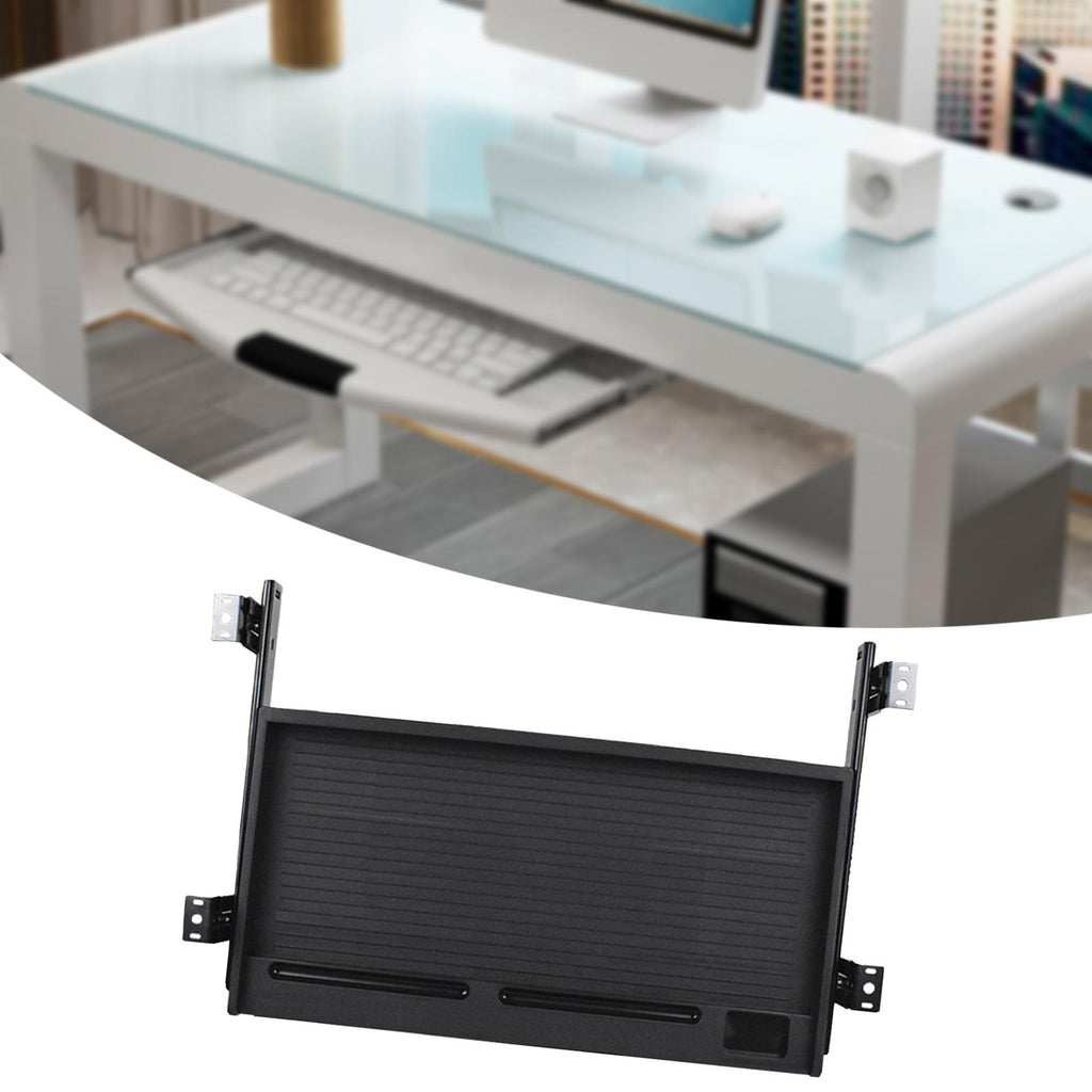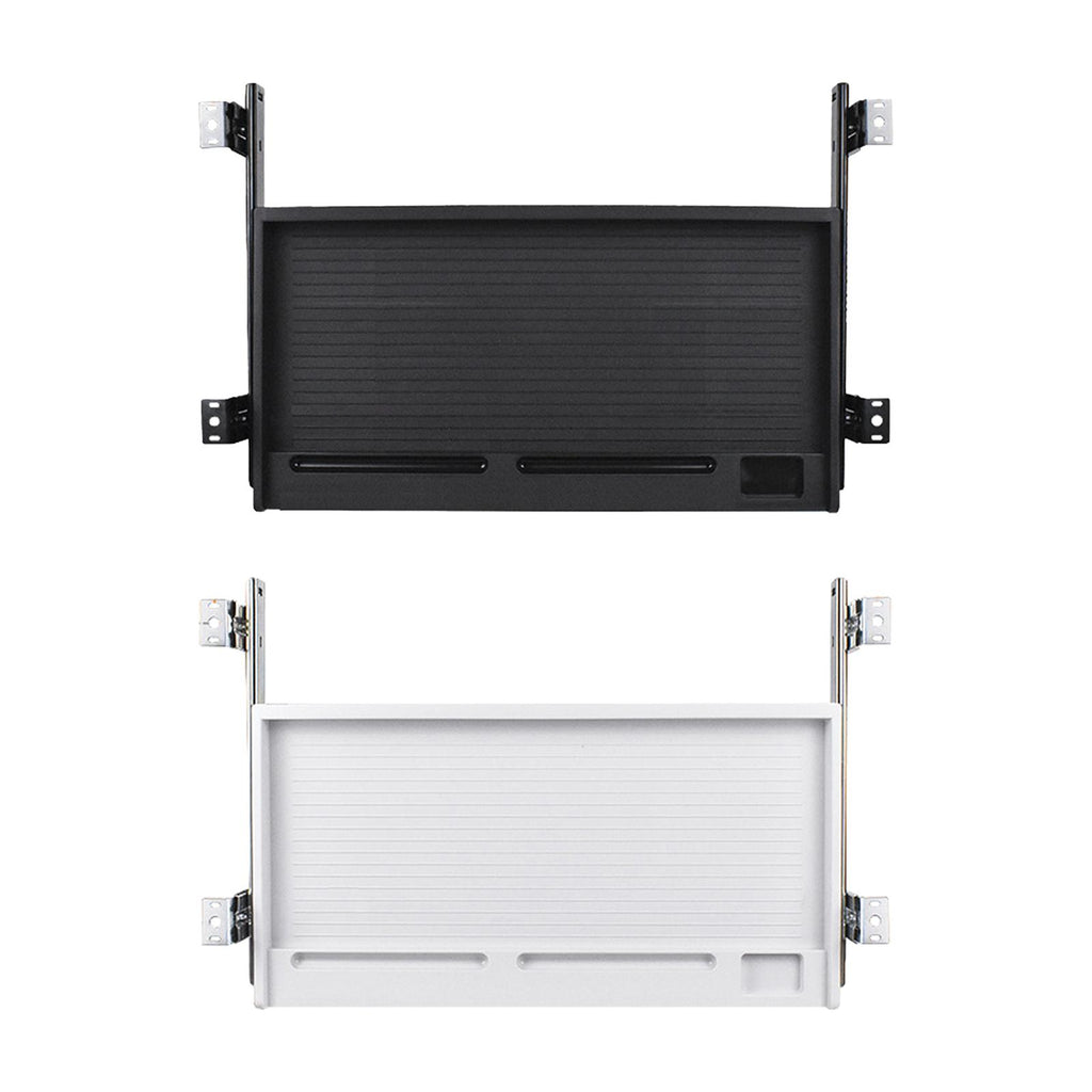 【Save Desktop Space】Keyboard Organizer with smooth gliding is positioned at the exact height under desk, suitable for most keyboards
