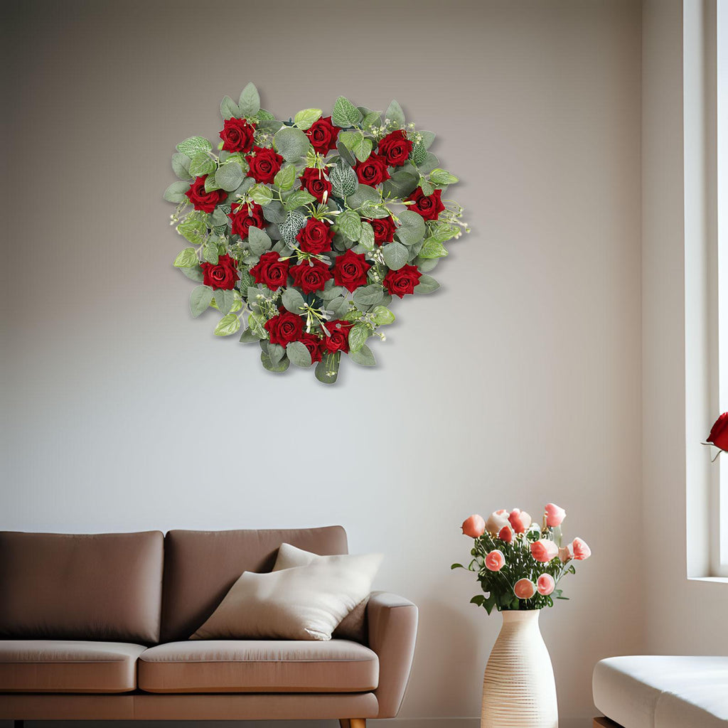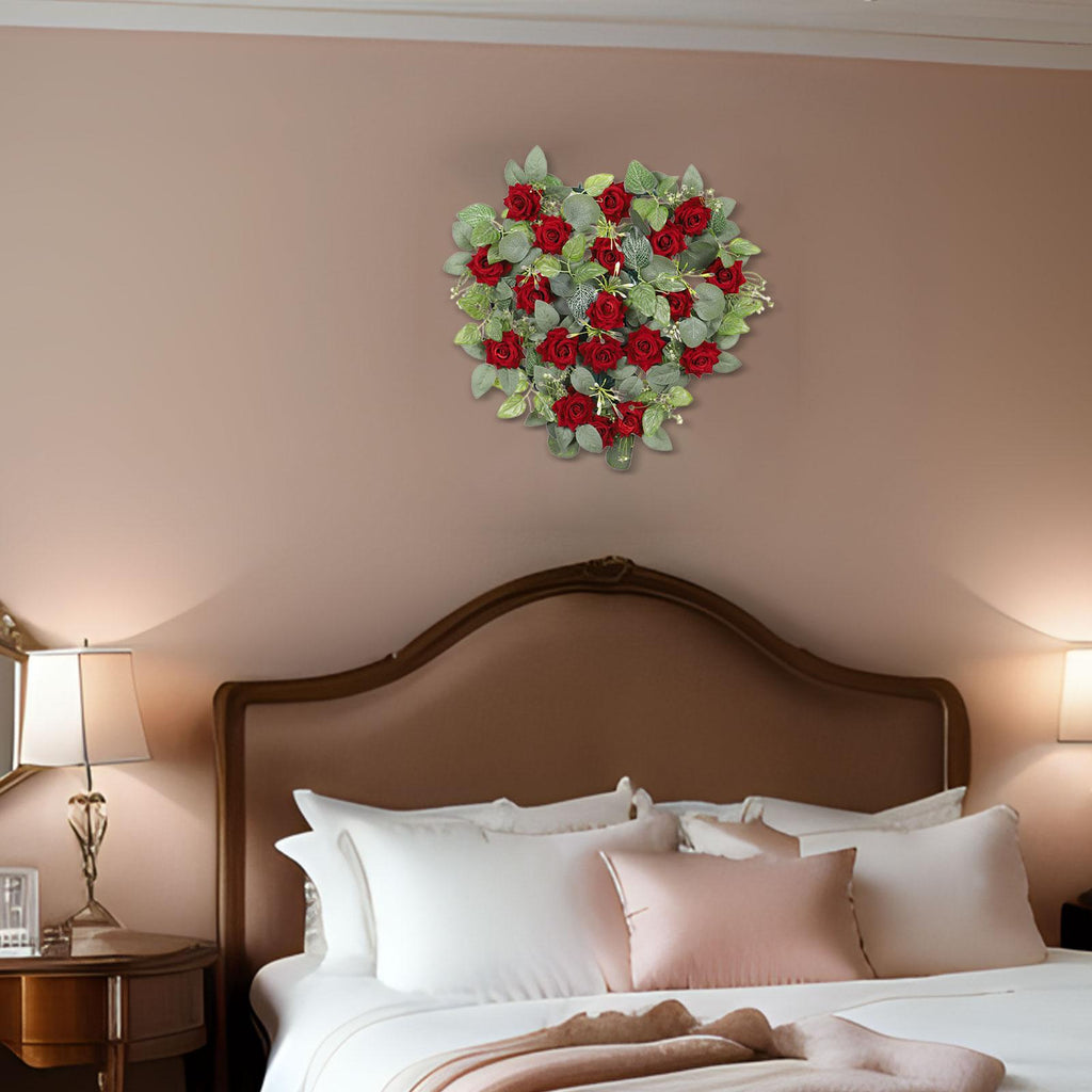 【Valentines Day Decoration】: Artificial Floral Heart Shaped Garland is suitable for wedding or valentine's day wall, eye catching color, adds peace, warmth, and beauty to any setting.
