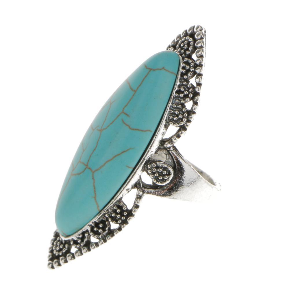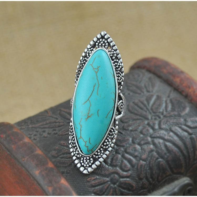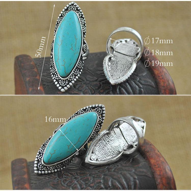 Maxbell Vintage Bohemia Tibetan Ethnic Oval Turquoise Engraving Long Finger Ring