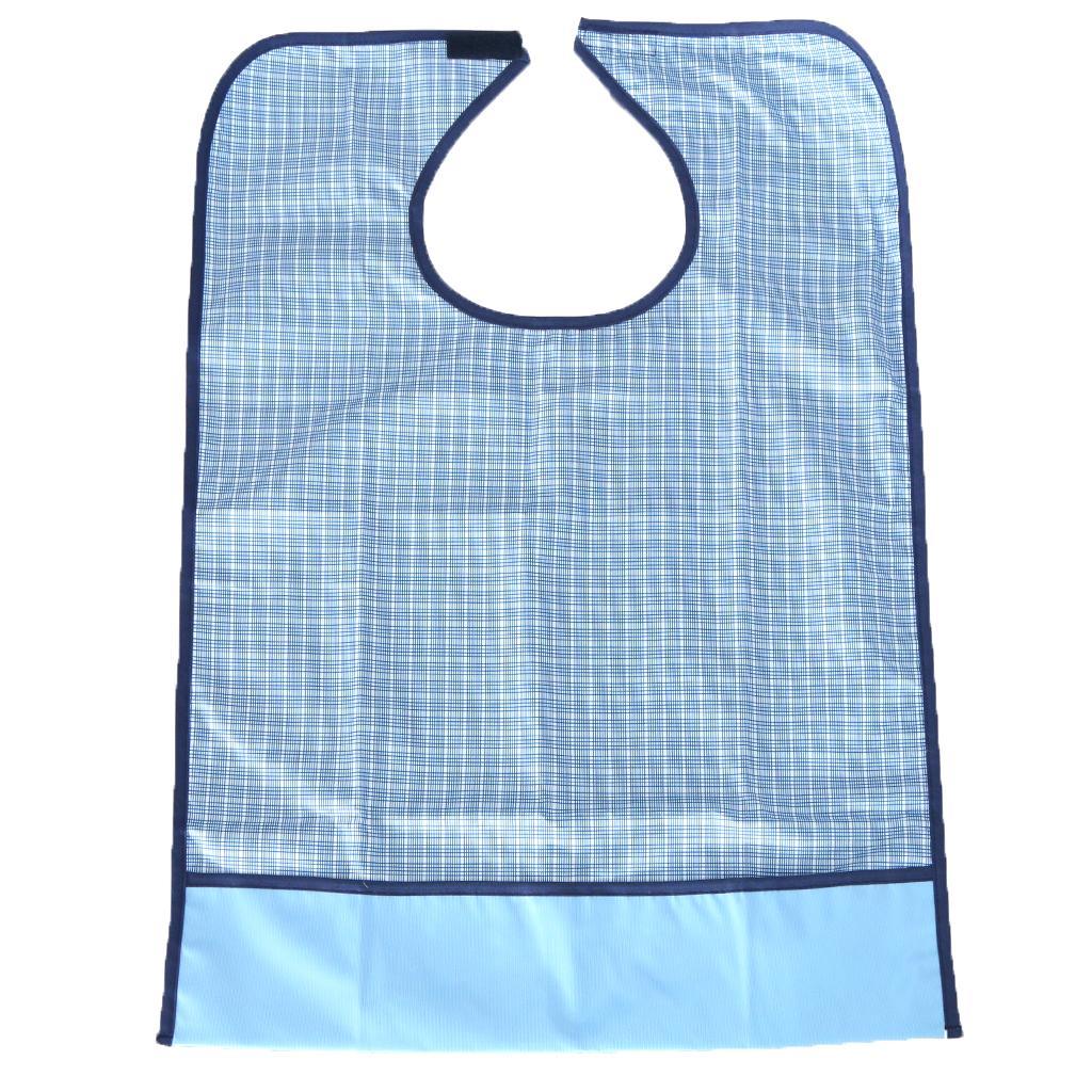 Maxbell Waterproof Bib Adult Mealtime Cloth Protector Disability Aid Apron Blue Grid