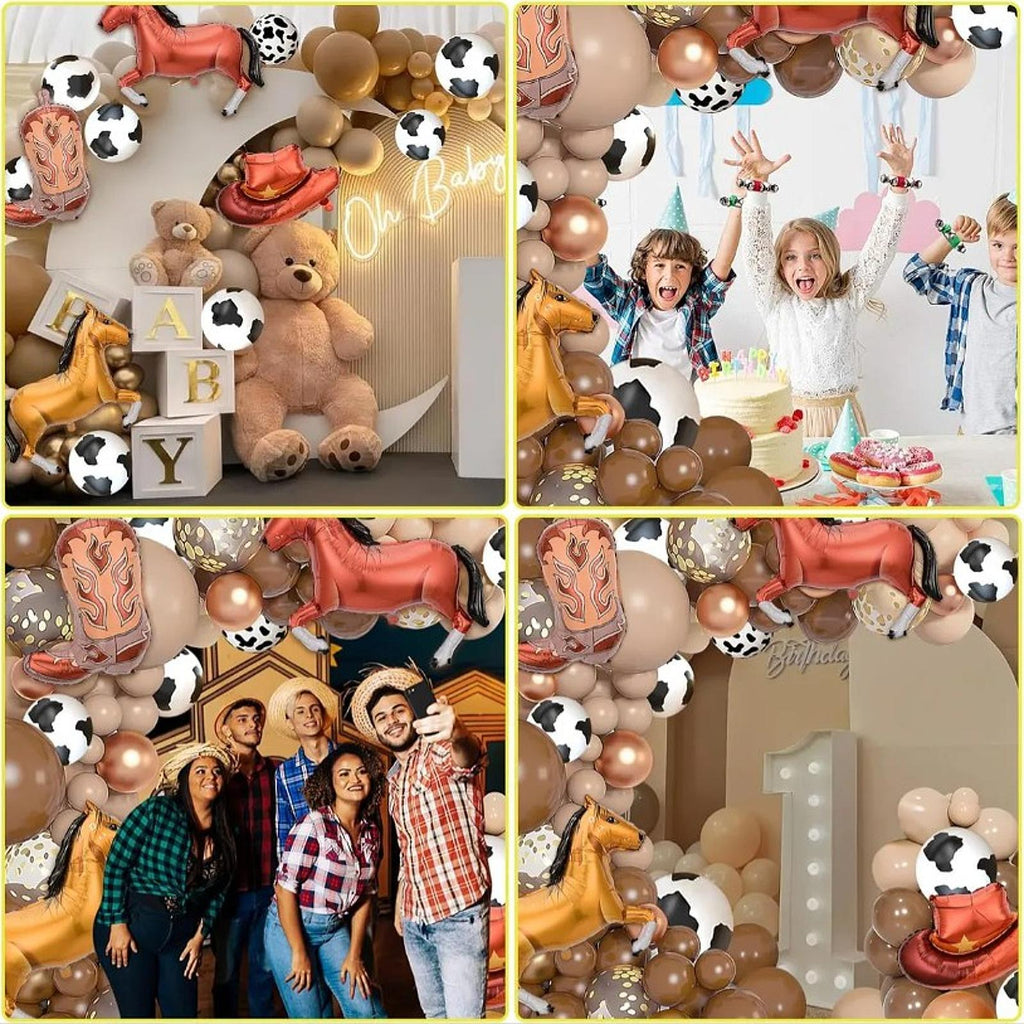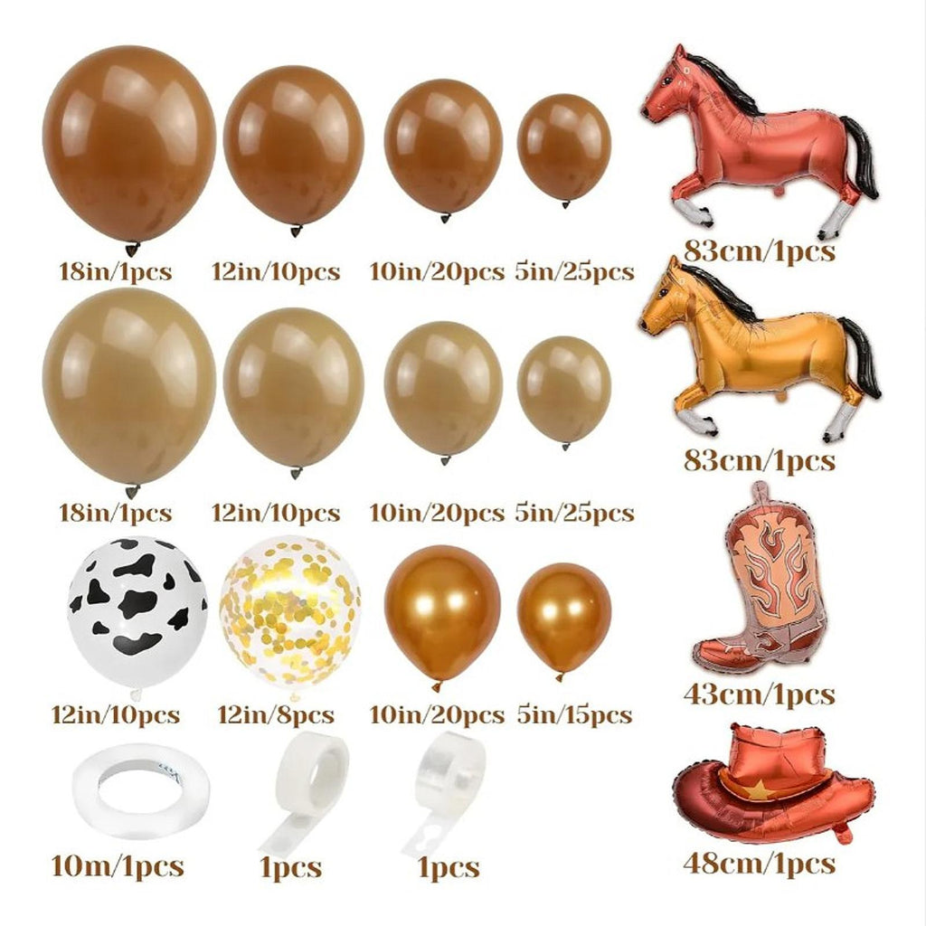 - 【Complete Western Party Decor Set】: This all inclusive kit features 165 latex balloons, 4 Western themed foil balloons, sticky dots, ribbon, and a balloon chain, everything needed to create a stunning balloon arch without additional purchases