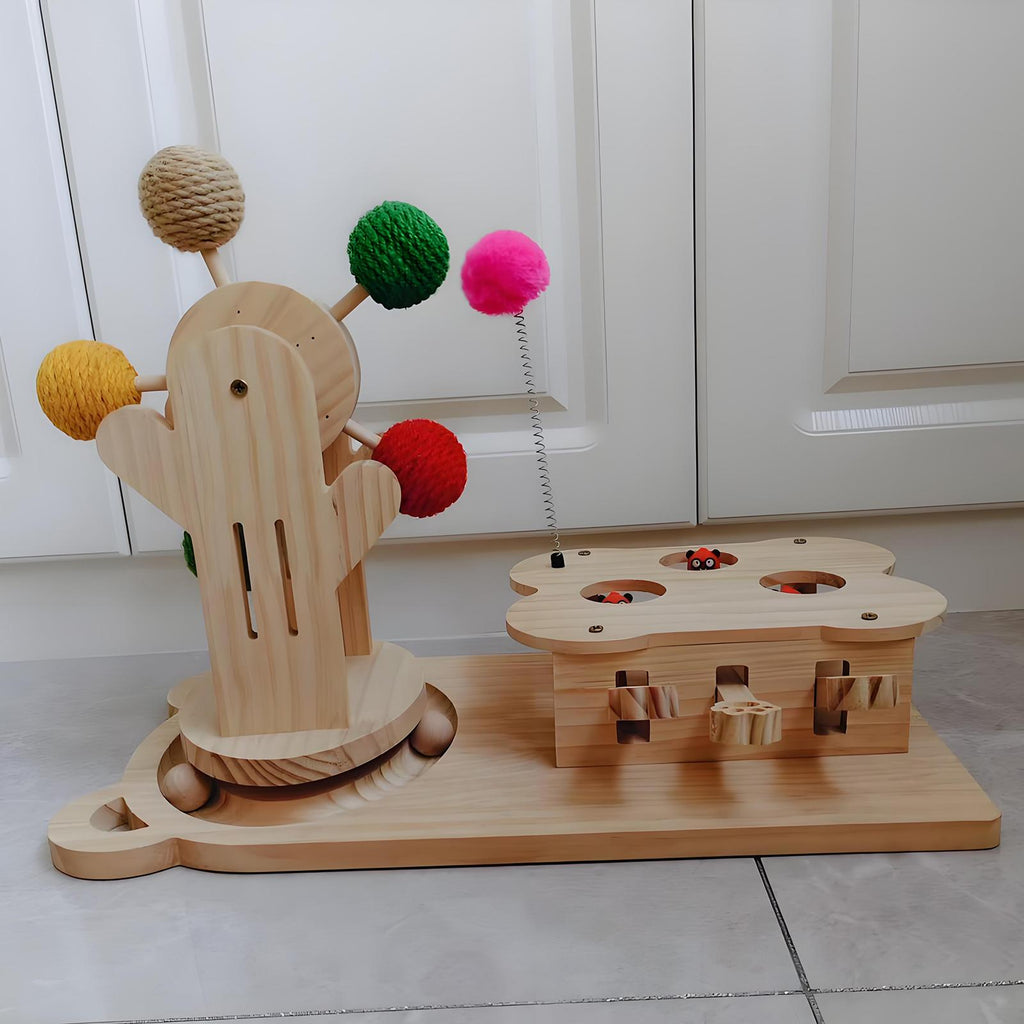 【Size Information】Wooden Whack A Mole Cat Toy measures approx 45cmx25cmx33cm/17.72inchx9.84inchx12.99inch
