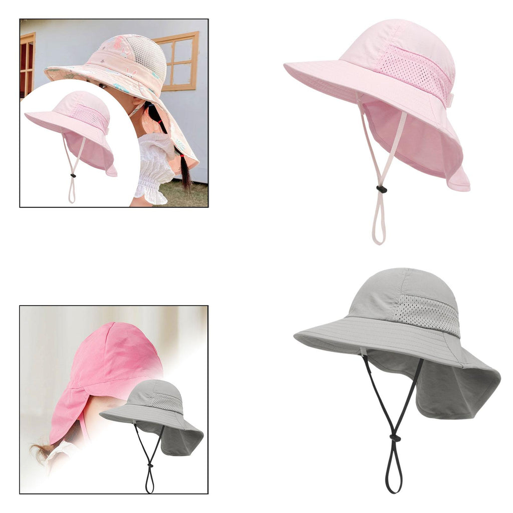 Maxbell Wide Brim Bucket Hat for Kids Breathable Sun Hat for Outdoor Garden Climbing Pink