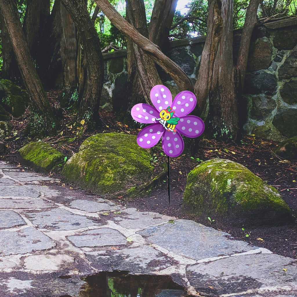 - Wind Spinner: The beautiful windmill is a great addition to outdoor garden decor and accents. As the flower shaped leaves swirl in the wind, they create stunning moving colors.