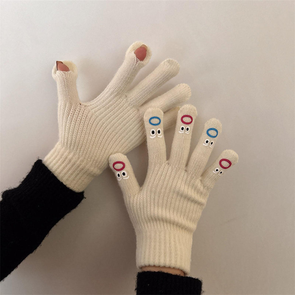 【Unique Design】: Warm Knitted Gloves with a beautiful pattern, simple and fashion. Open fingertip design of two fingers, making them touchscreen friendly.