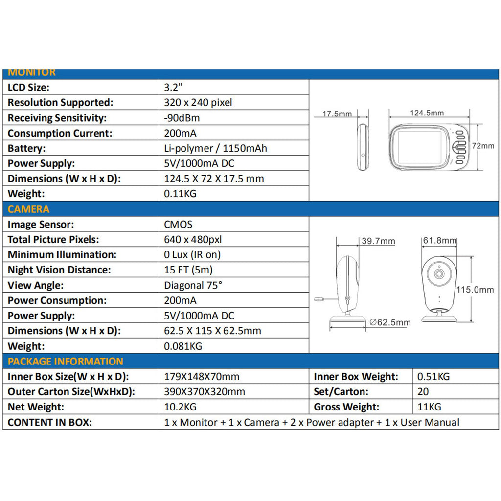 Room temperature : this monitor is equipped with a temperature sensor, which will report on the receiver screen. You can make sure it is not too hot or too cold for your baby.
