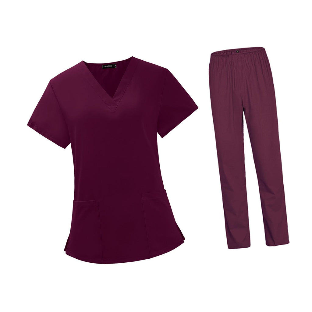 Maxbell Woman Nurse Scrubs Set Uniform Red Nurse Costume for Female Shrink Resistant Size M