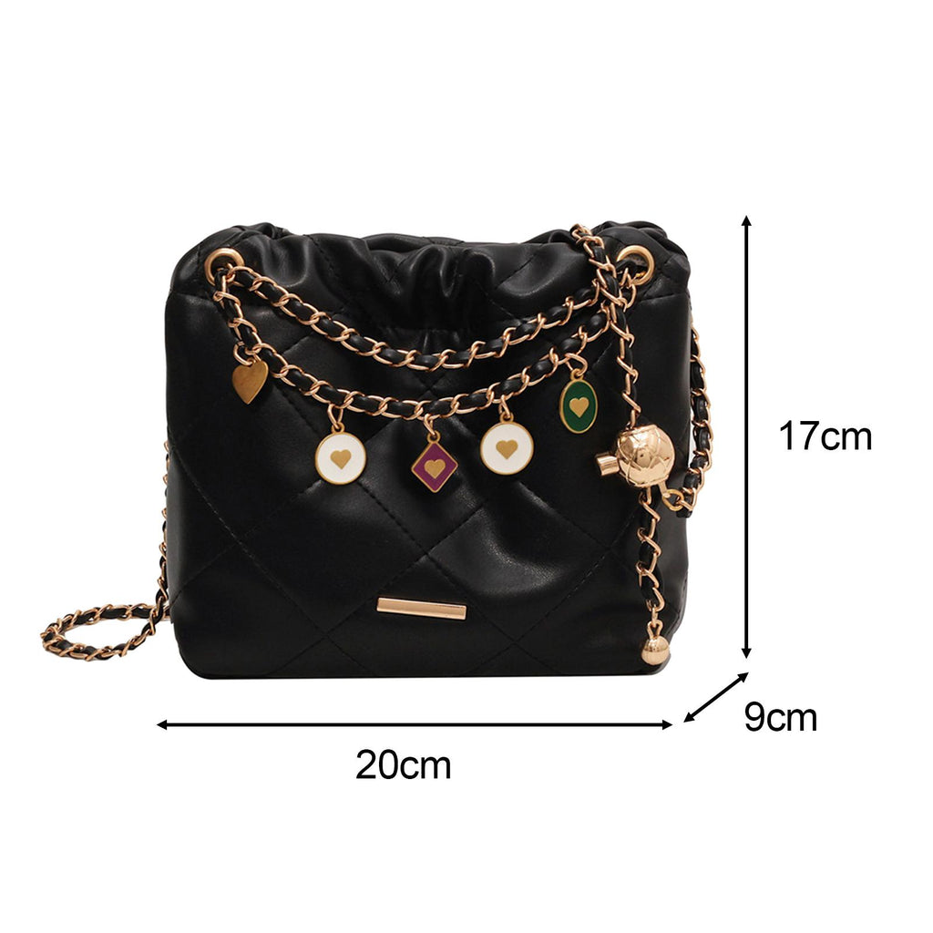 【High Quality Material】: This chain shoulder bag is made from high quality PU leather, offering excellent texture and durability. It's easy to clean and long term use. Size: 20cmx9cmx17cm/7.87inchx3.54inchx6.69inch.