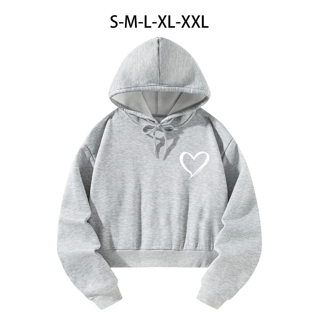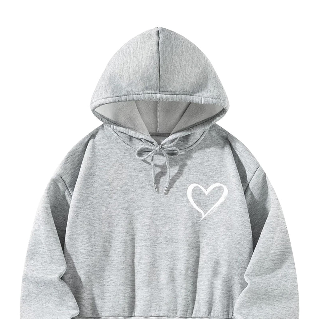 【Features】Drawstring hoodie for women with heart pattern printed, loose fit, drawstring hooded, suitable for fall and winter.