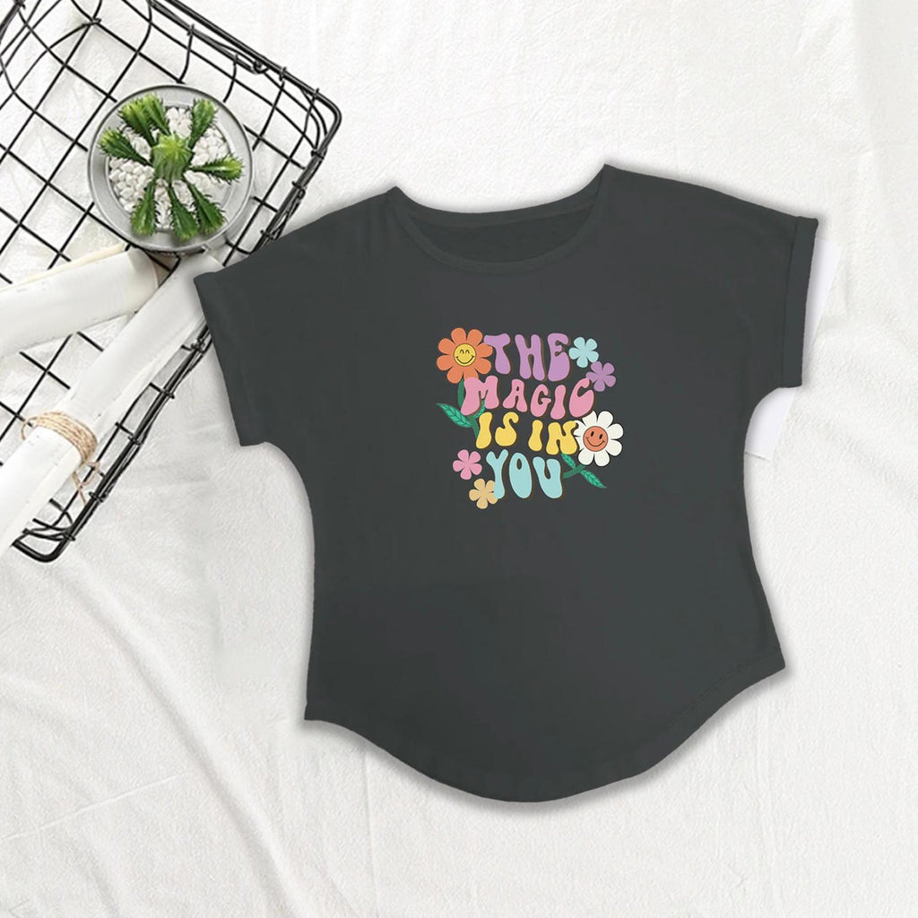 【Short Sleeve】Women Round Neck Lady Top is with novelty hem, short sleeve and round neck, versatile and casual.
