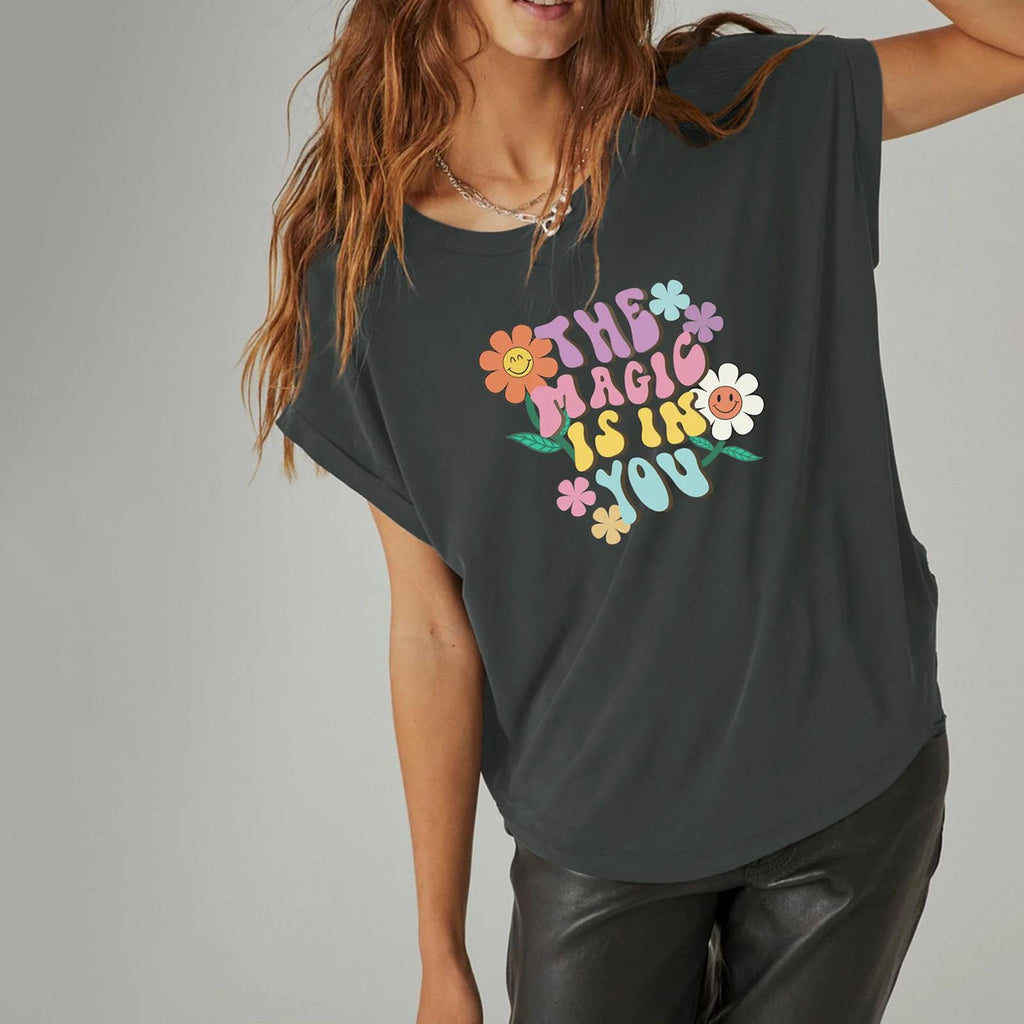 【Fashion Design】Women Summer Printed Short Sleeve Top is printed with flower and letters, creative and fashionable.