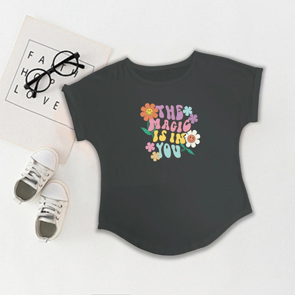 【Fashion Design】Women Summer Printed Short Sleeve Top is printed with flower and letters, creative and fashionable.