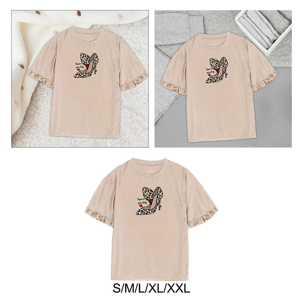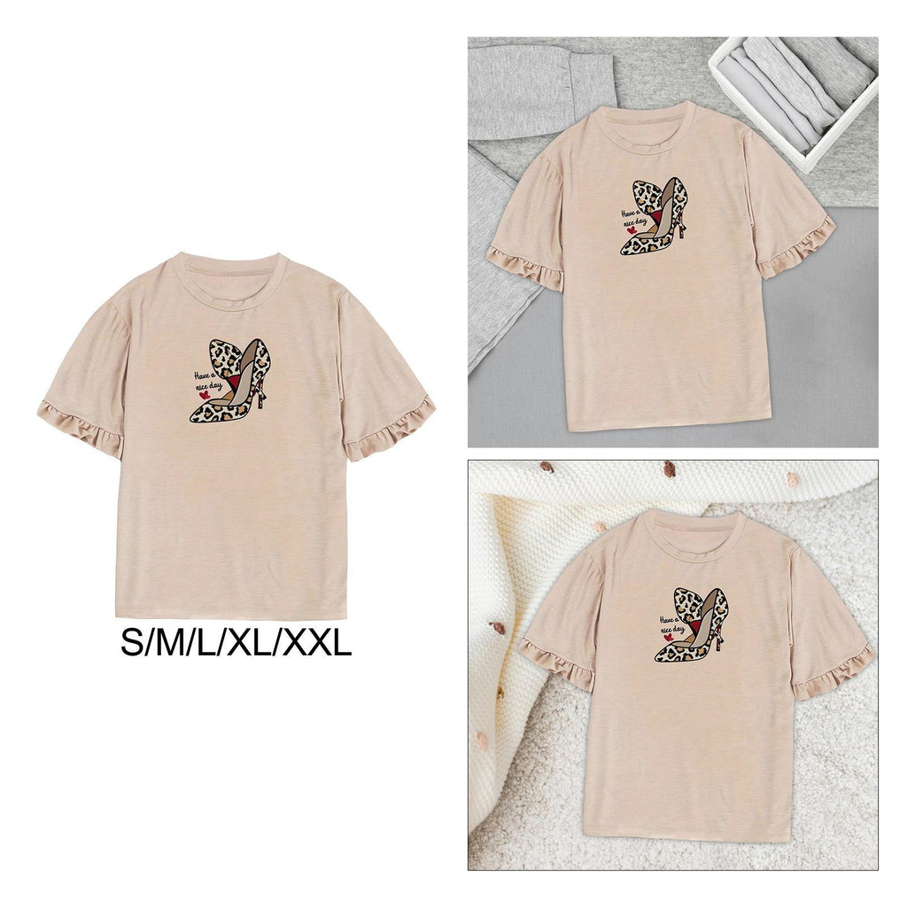 Maxbell Women Ruffle Short Sleeve Outfits Female Vacation Round Neck Work Summer Top