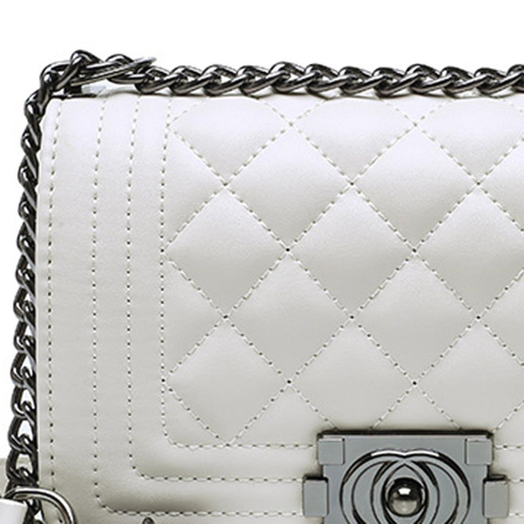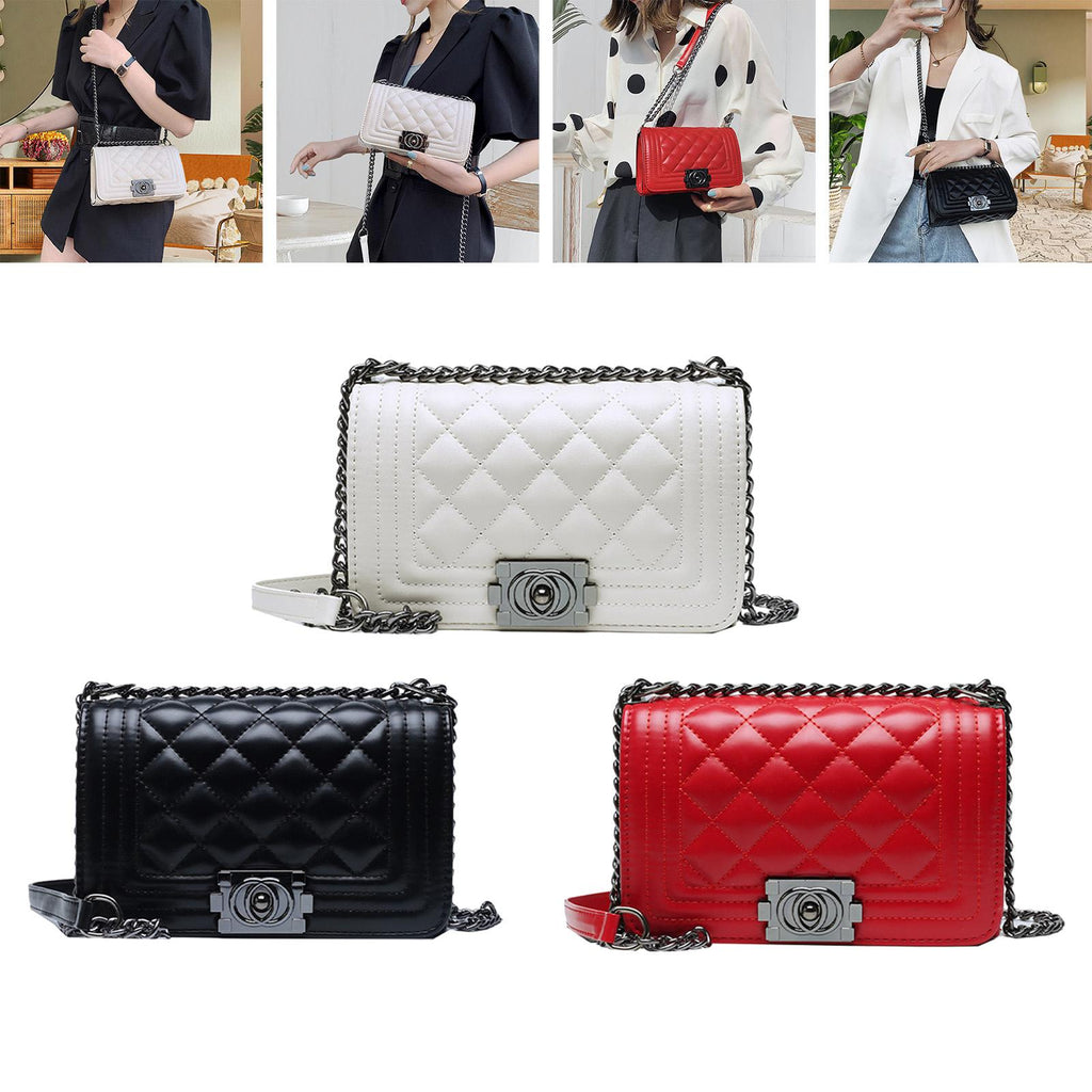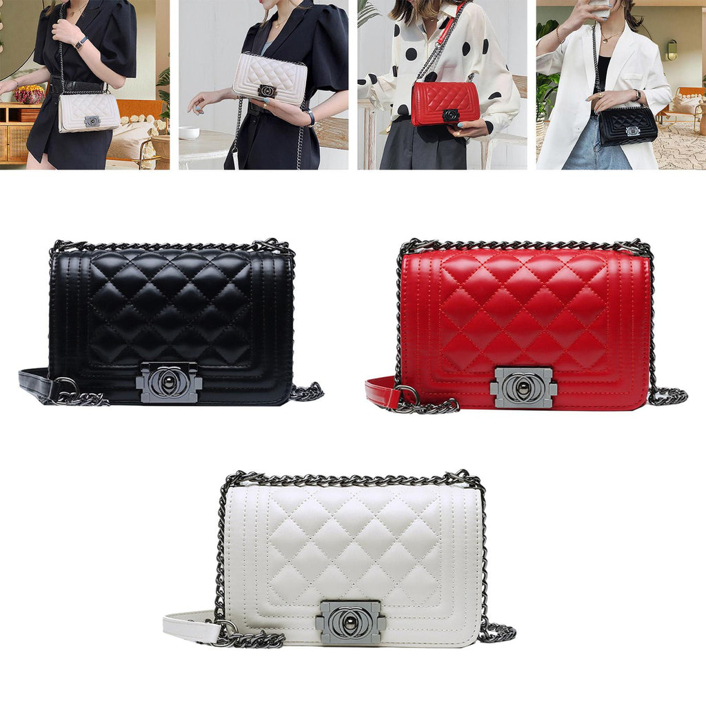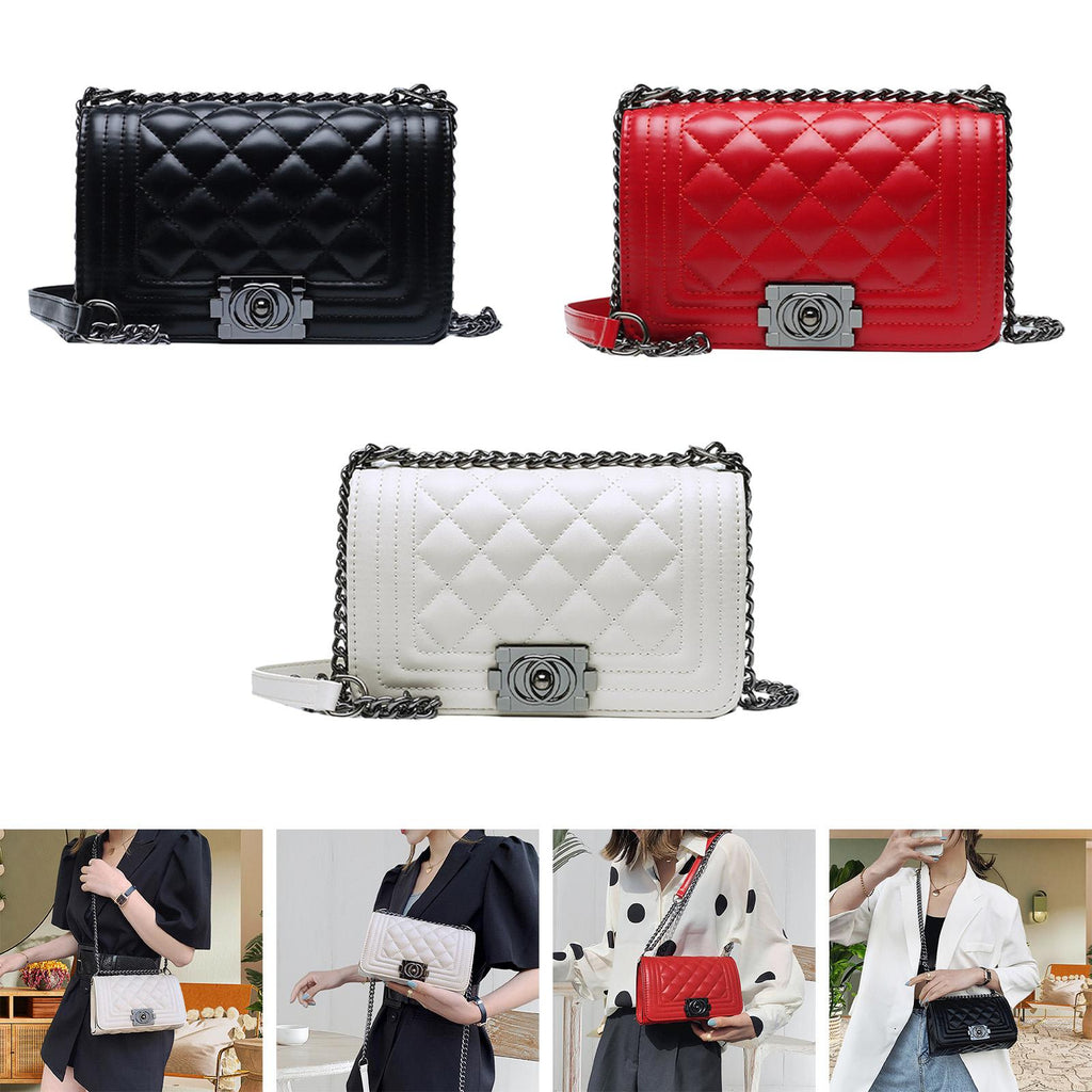 【High Quality Material】: This chain shoulder bag is made from high quality PU leather, offering excellent texture and durability. It's easy to clean and long term use. Size: Top Width 21cm/8.27inch, Bottom Width 21cm/8.27inch, Height 13cm/5.12inch, Thickness 8cm/3.15inch.